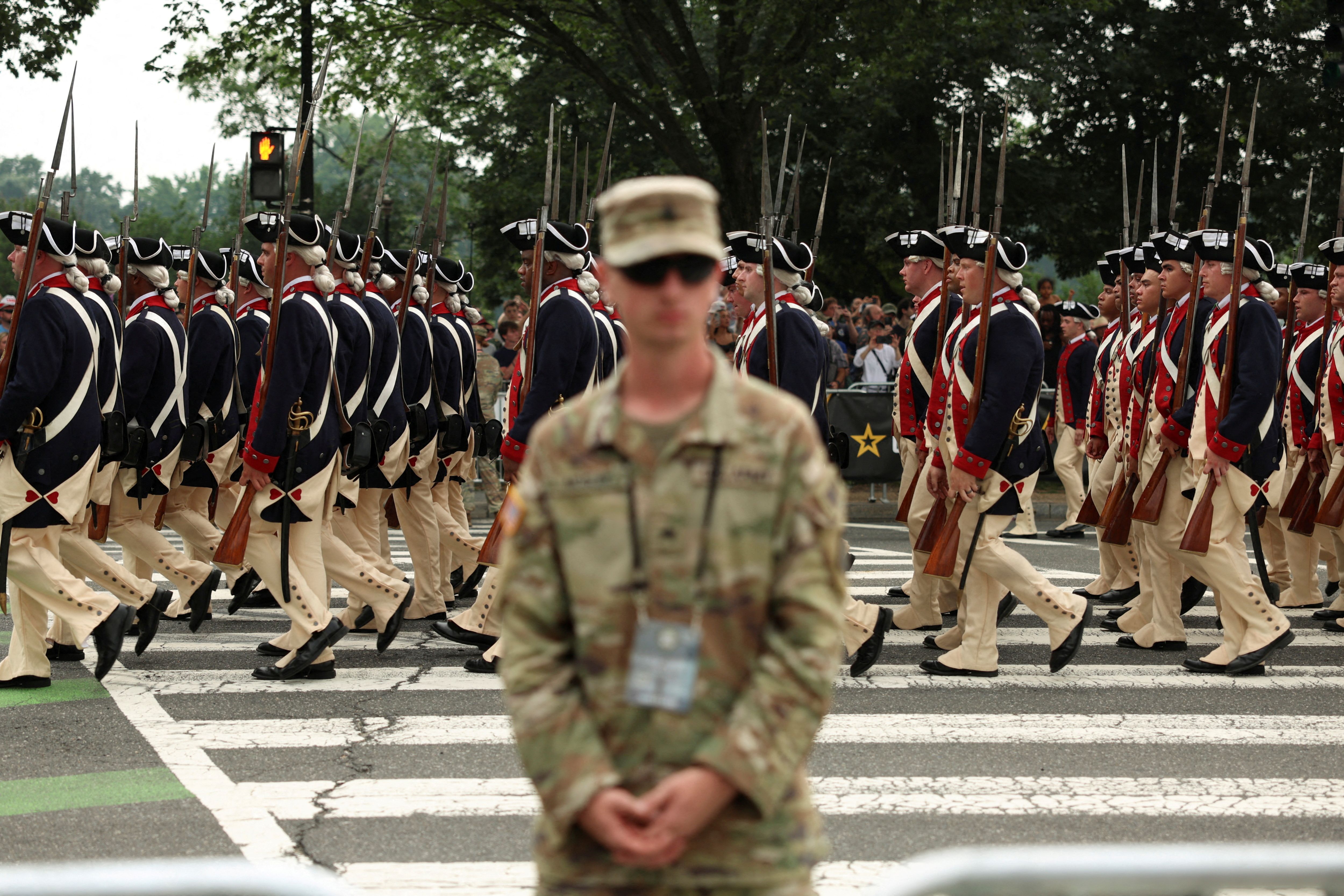 Participants in vintage uniforms take part in the parade in Washington on June 14, 2025. (Photo by Kevin Mohatt/Reuters)