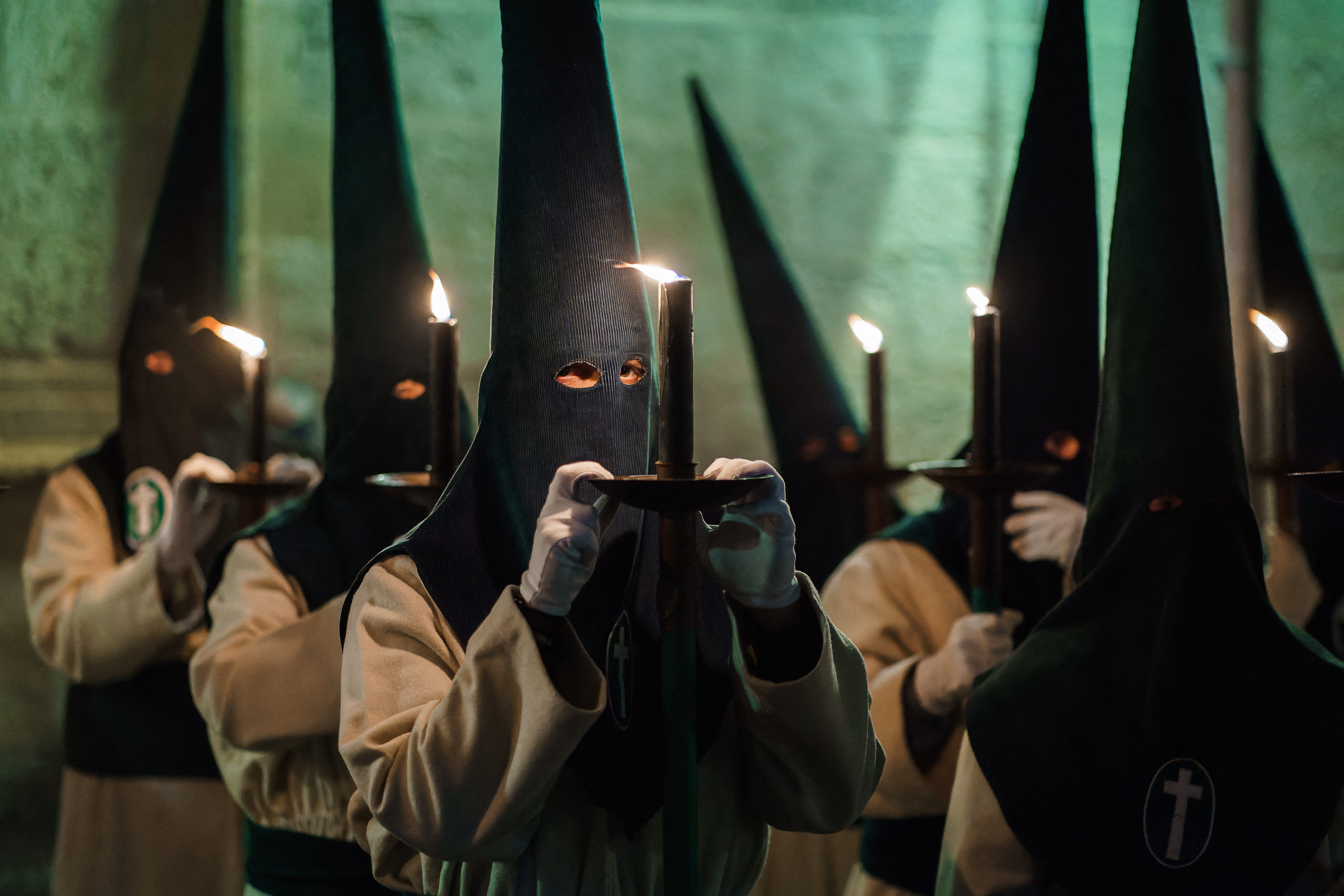 Penitents from the “Hermandad Penitencial de las Siete Palabras” brotherhood take part in a procession during Holy Week in the northwestern Spanish city of Zamora on March 26, 2024. (Photo by Cesar Manso/AFP Photo)