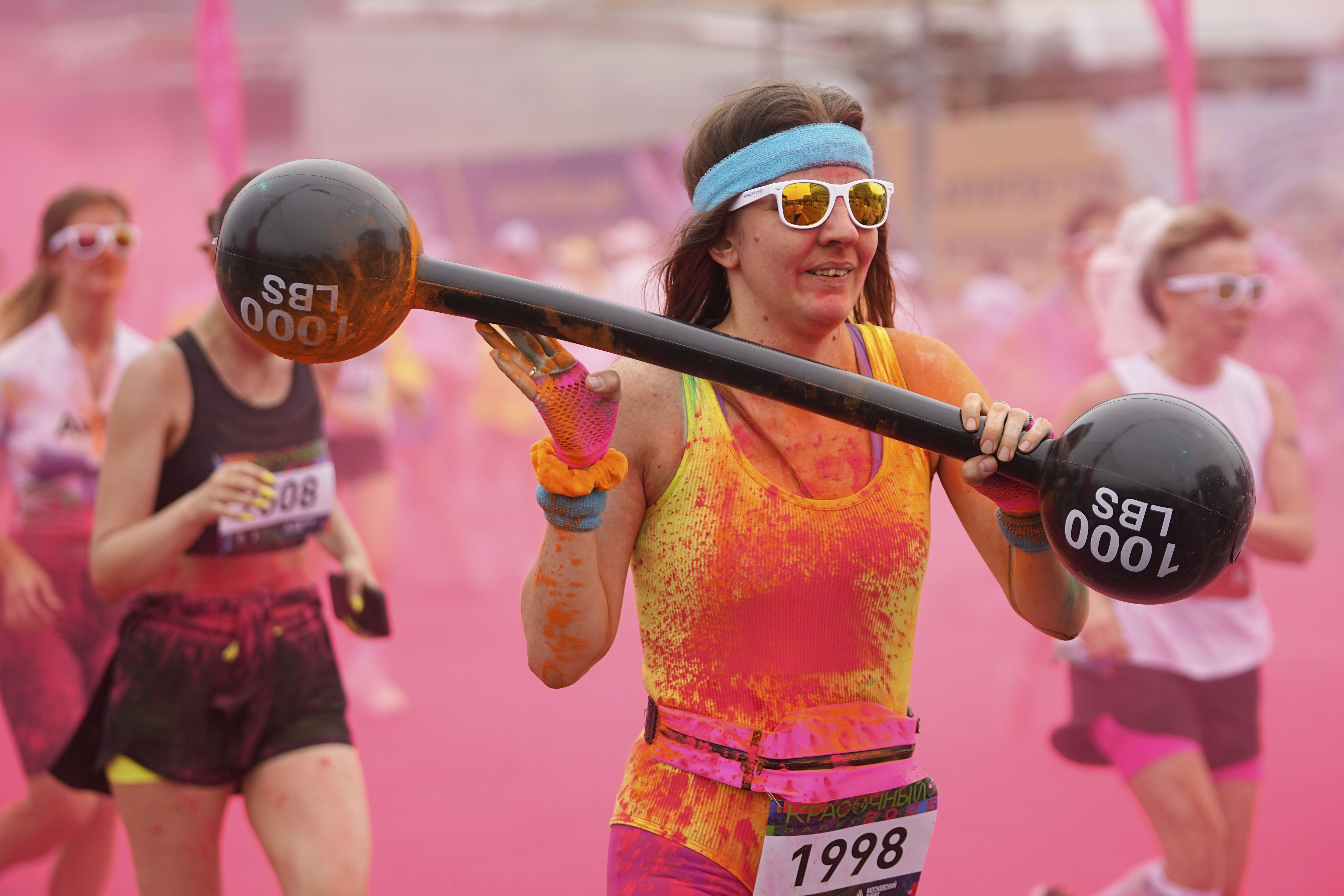 Participants get covered with colored powder during The Color Run in Moscow, Russia, Sunday, June 8, 2025. (Photo by Pavel Bednyakov/AP Photo)