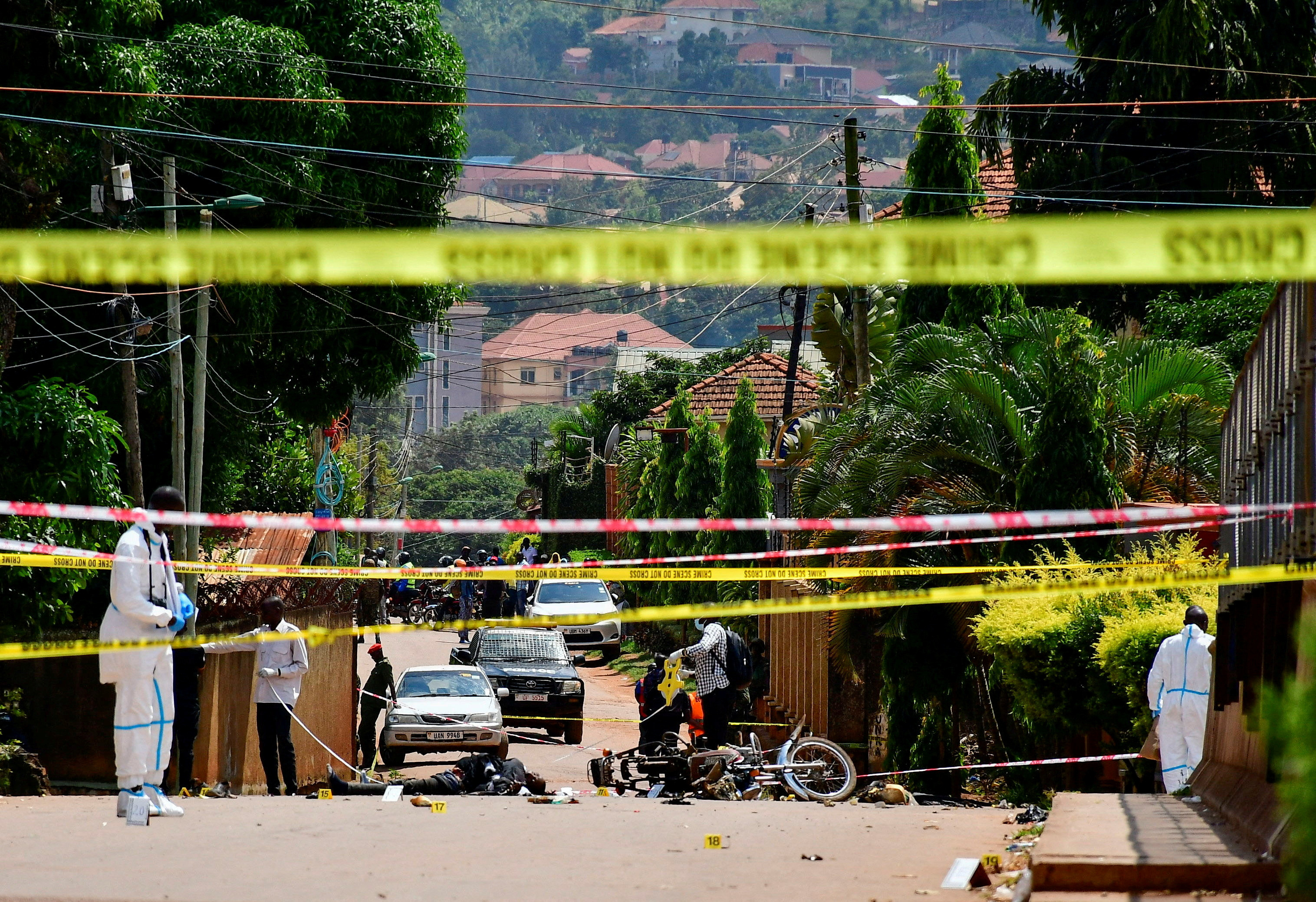 Forensic experts secure the scene of a bomb blast near the Munyonyo Martyrs' Shrine, a Roman Catholic shrine as Ugandans assembled to celebrate Martyrs' Day, which commemorates Christians who were killed for their faith in the 19th century, in Munyonyo suburb of Kampala, Uganda on June 3, 2025. (Photo by Abubaker Lubowa/Reuters)
