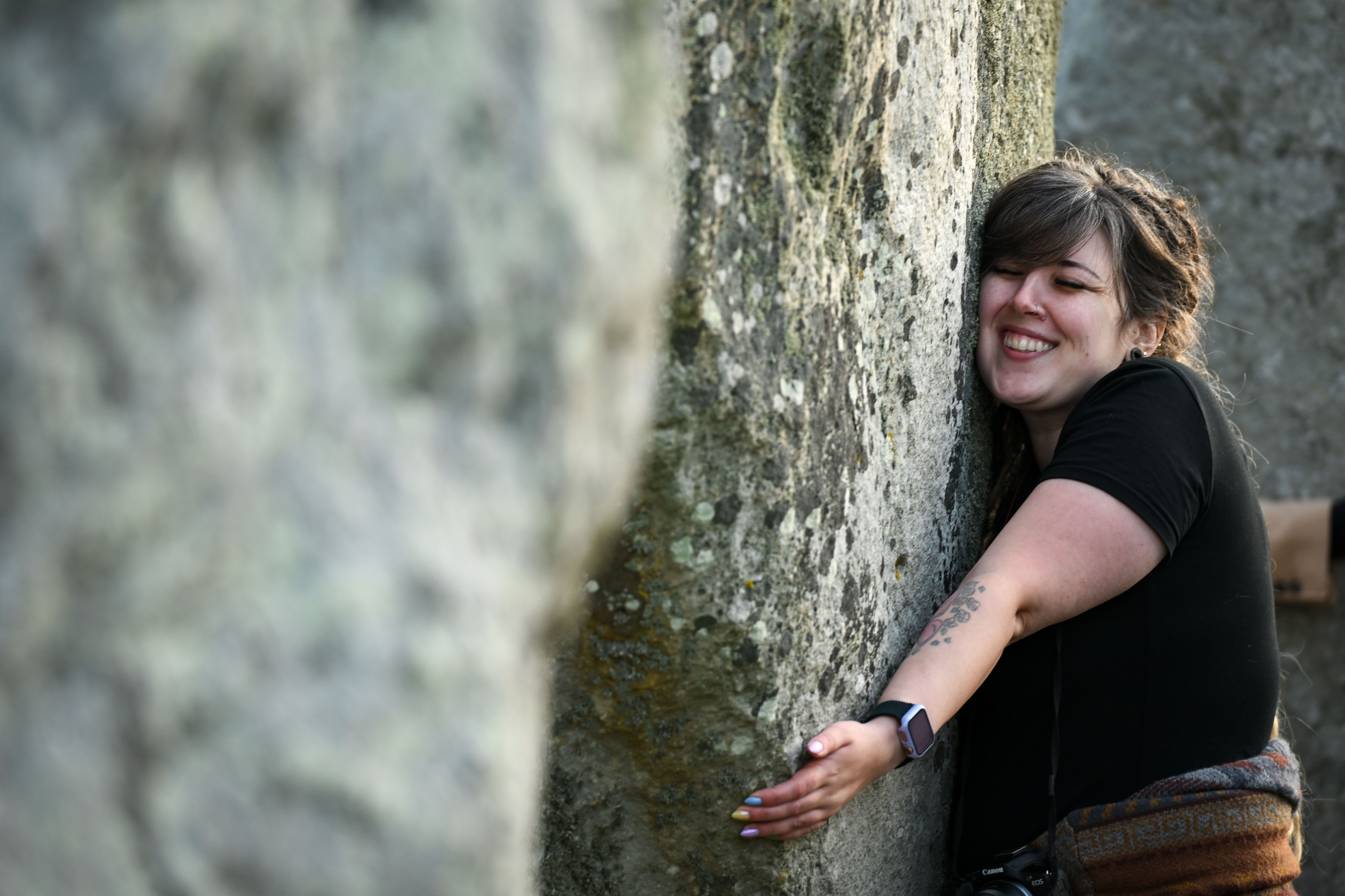 People touch the stones at Stonehenge on June 21, 2023 in Wiltshire, England. In the Northern Hemisphere, the longest day of the year falls on the 21st of June. This day is often referred to as the Summer Solstice or Midsummer's Day. (Photo by Finnbarr Webster/Getty Images)