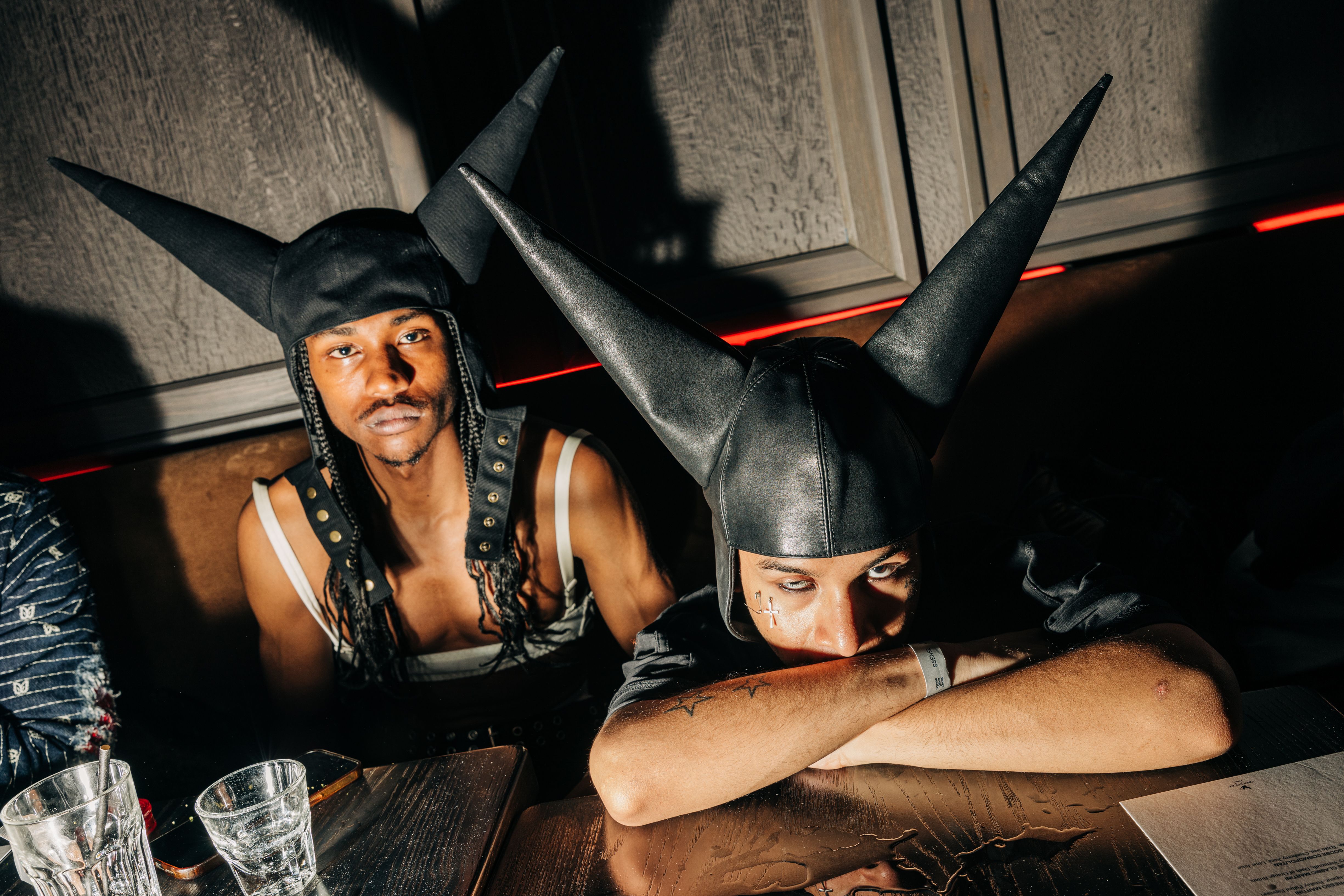 Morgan Austin and Maxwell Vice attend the Met Gala Party for Jean Paul Gaultier x Shayne Oliver Group held at Sapphire in Manhattan on May 7, 2024. (Photo by Jeenah Moon for The Washington Post)