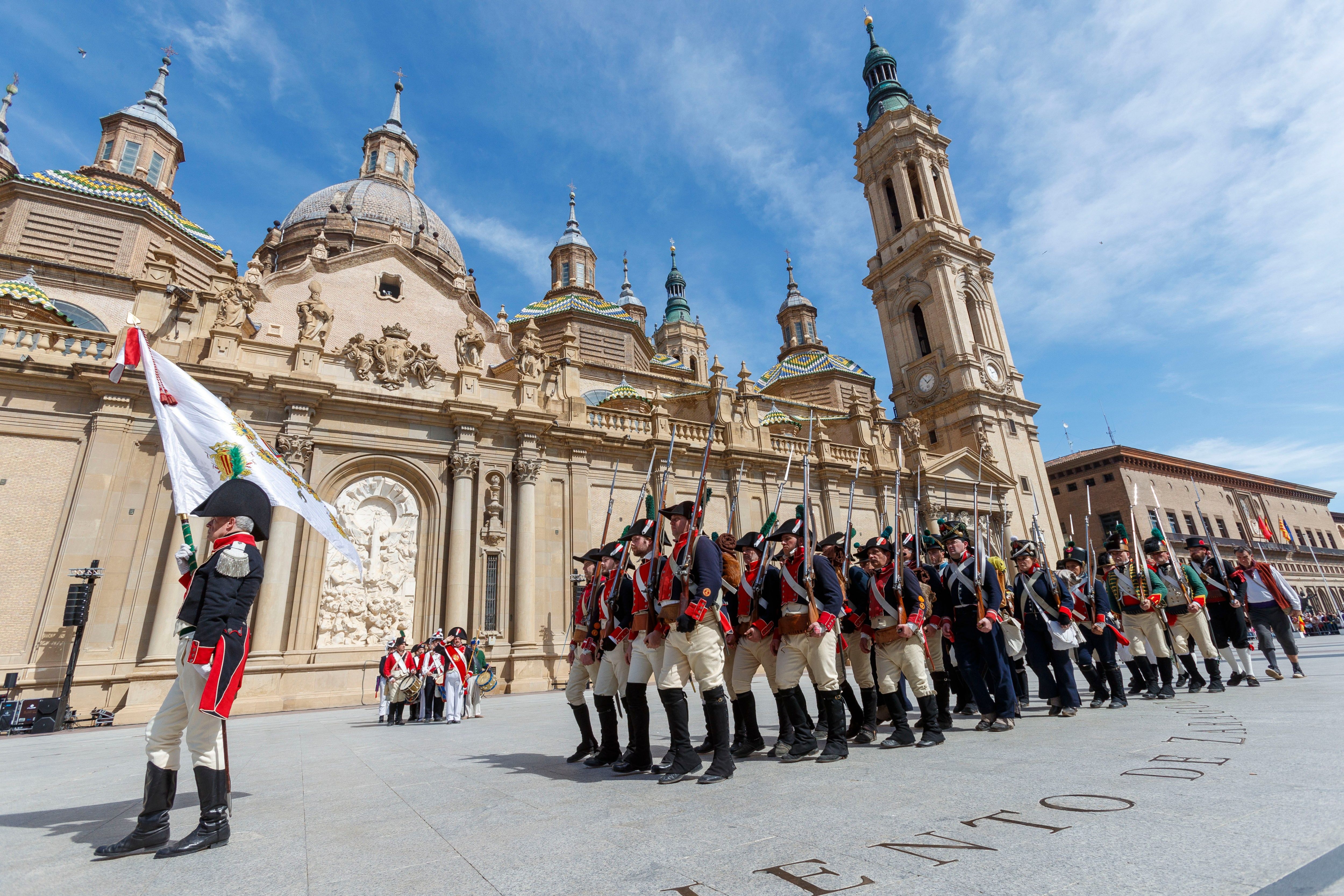 Volunteers wearing historical costumes participate in a reenactment of the Zaragoza siege in Zaragoza, northern Spain, 16 March 2024. Volunteers from Spain, France, Malta, Italy, Ireland, and Portugal attended the event that remembers a fight during the Peninsular War (1807-1814) in which the French army besieged the city in the summer of 1808. (Photo by Javier Belver/EPA/EFE)