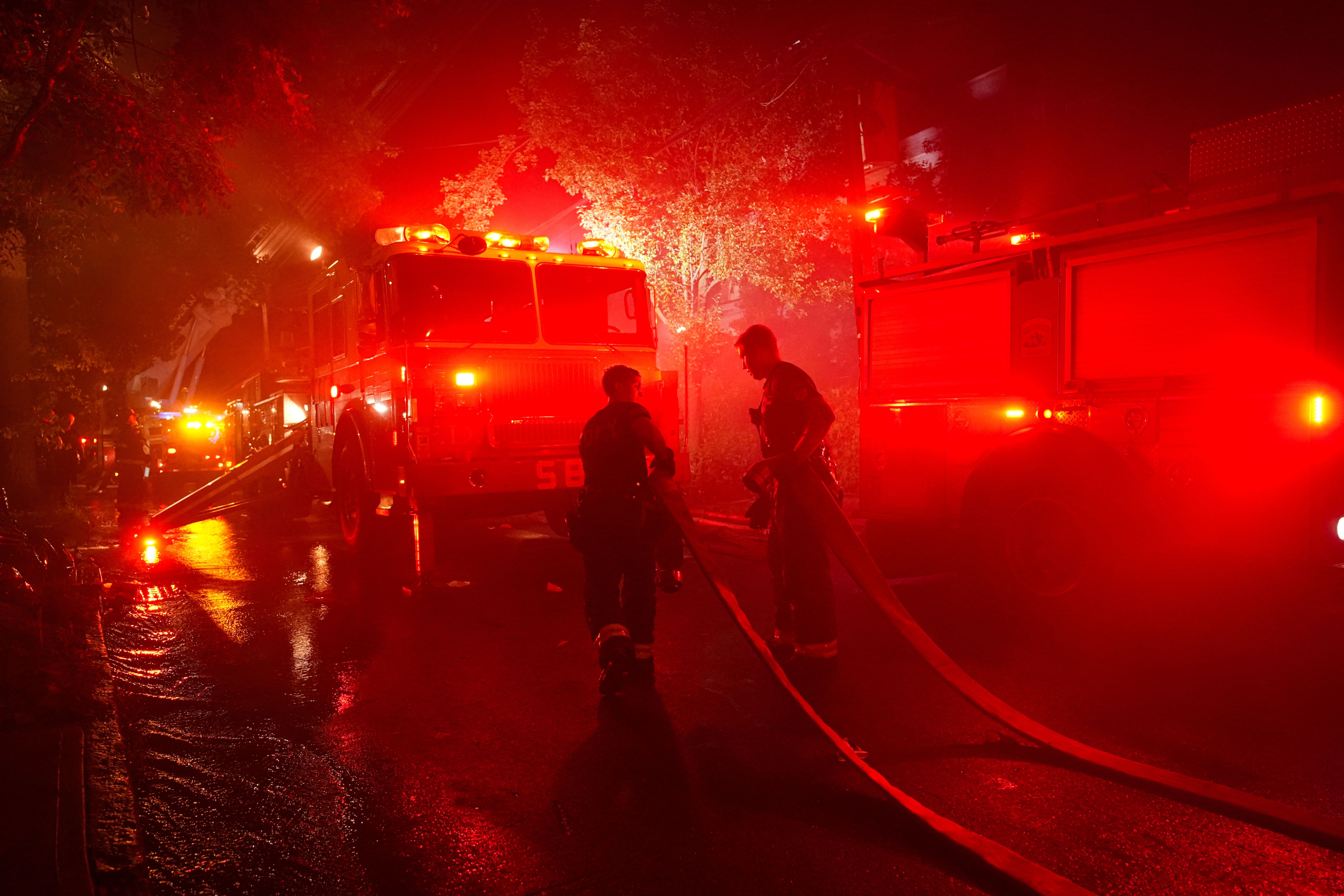 A devastating fire erupted just before 7:30p.m. today at a multifamily home on Devoe Terrace in the Bronx, NYC rapidly spreading to two adjacent properties. Emergency crews escalated the response to a fivealarm blaze. In total, 14 individuals were hospitalizedincluding one firefighter, who remains in critical conditionalongside 13 civilians with varying injuries. The FDNY is conducting an investigation to determine the cause (Photo by Lokman Vural Elibol/Anadolu via Getty Images)