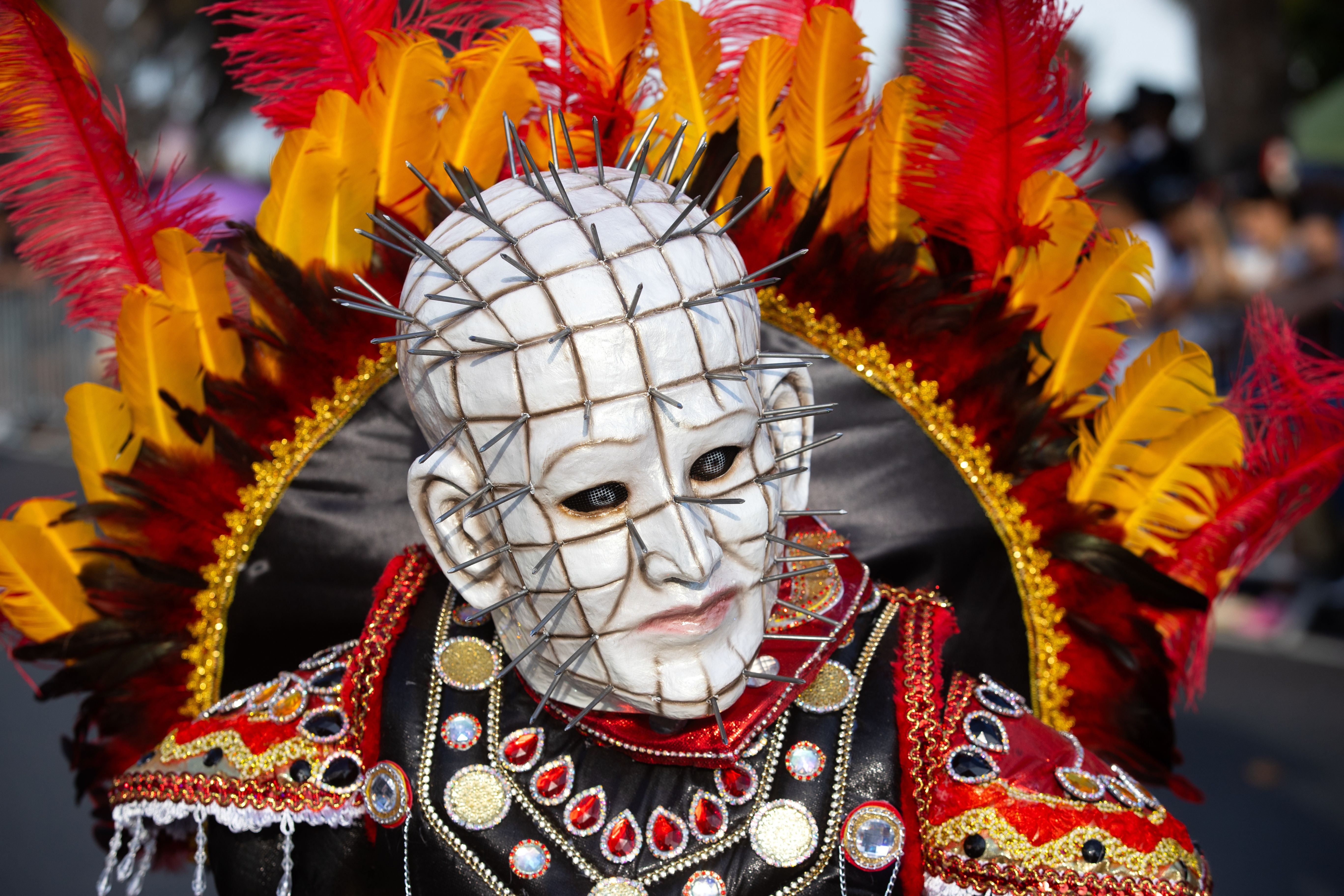 A troupe member participates in the National District Carnival in Santo Domingo, Dominican Republic, 03 March 2024. The carnival, organized by the Mayor's Office of Santo Domingo, was attended by some 80 members of troupe members and individuals. The cultural expressions' outstanding presence highlighted the festival's richness and creativity. (Photo by Orlando Barria/EPA/EFE)