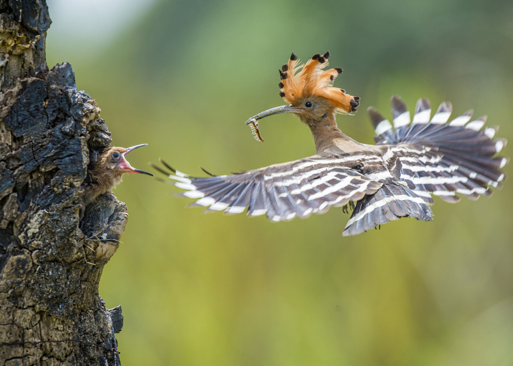 A hoopoe carries an insect to feed its waiting chick. (Photo by Trucxanh9/500px/Getty Images)