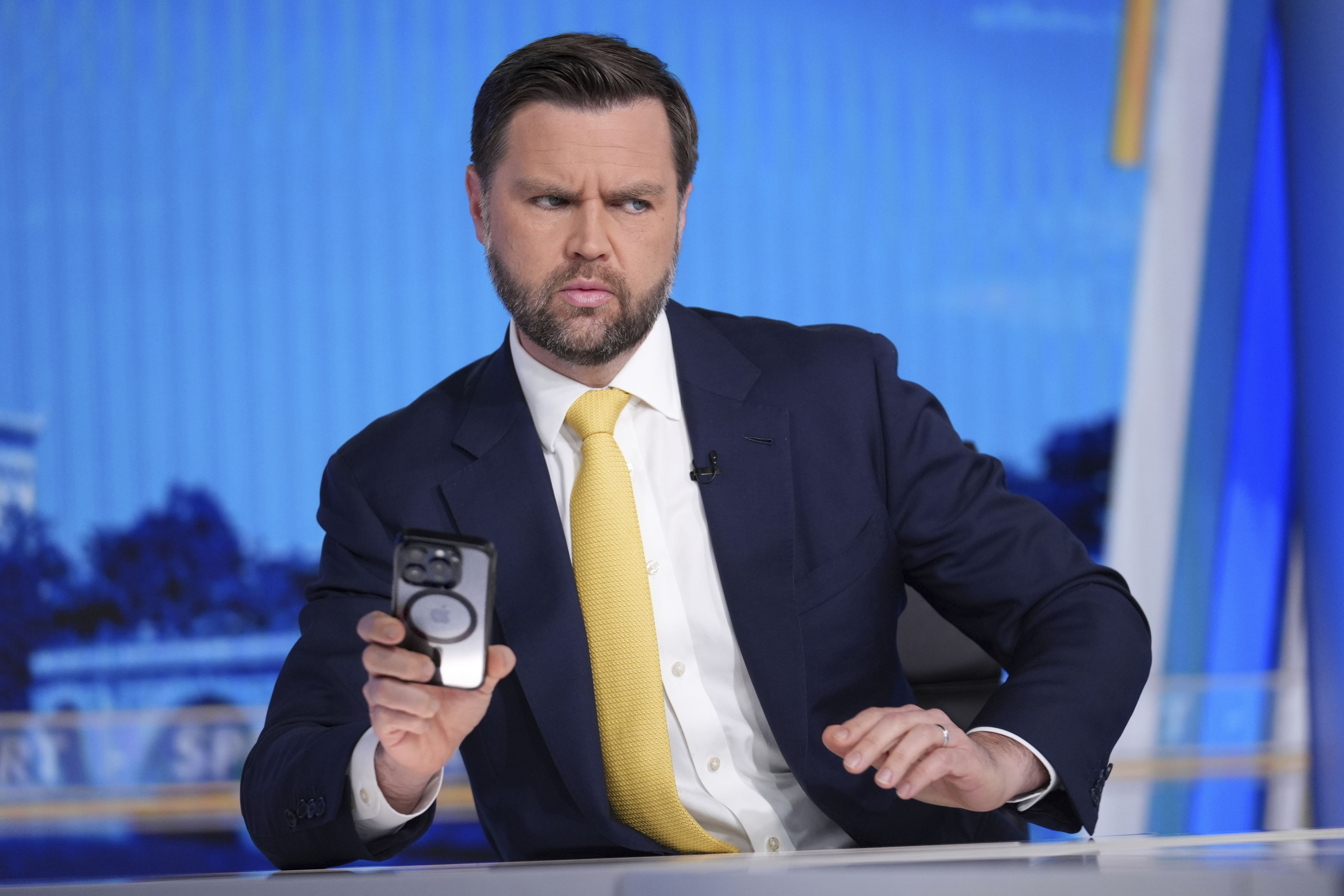 Vice President JD Vance checks his phone just before his interview with Bret Baier on FOX News Channel’s Special Report with Bret Baier at the FOX News bureau in Washington, Monday, June 23, 2025. (Photo by J. Scott Applewhite/AP Photo)