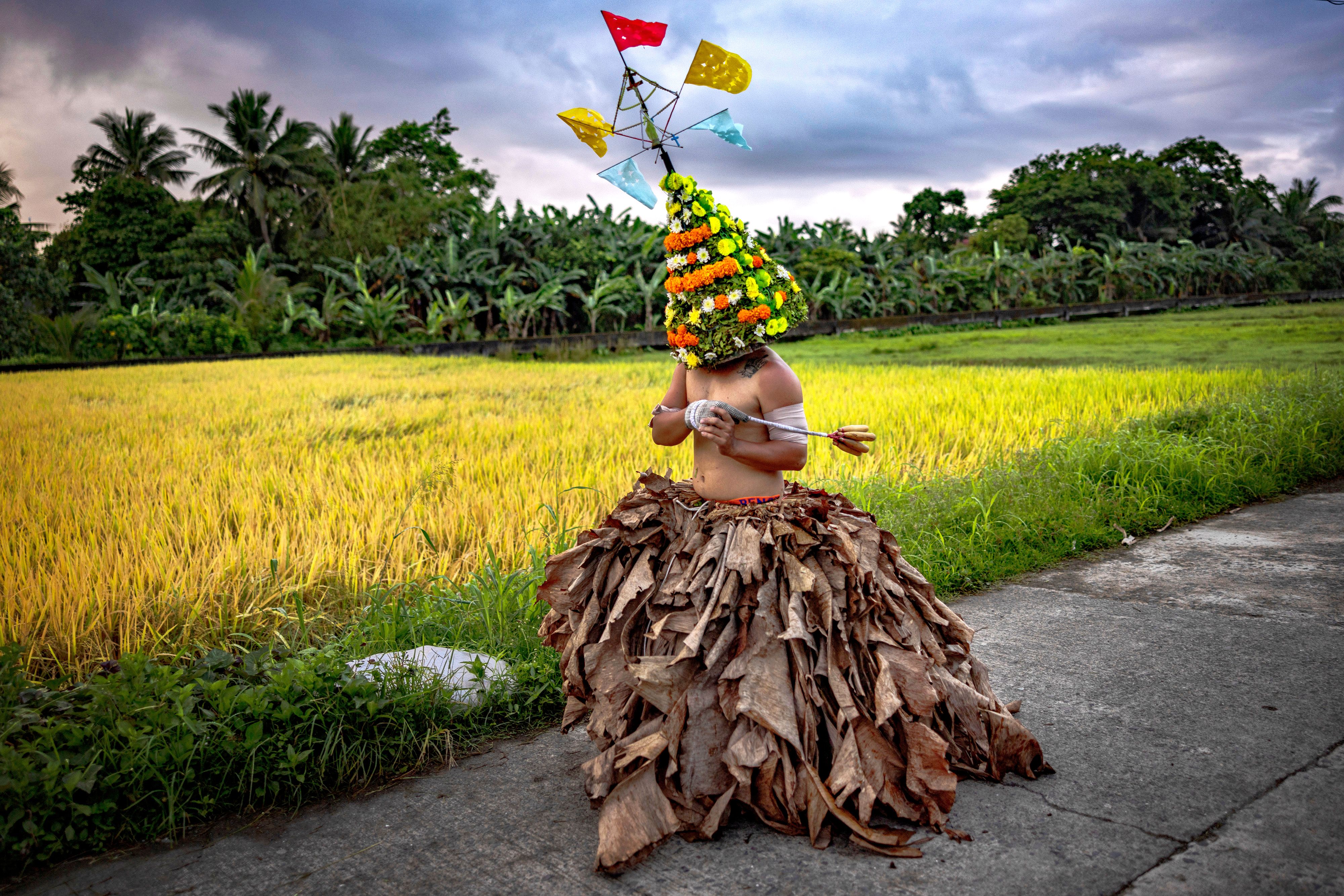 A flagellant wearing dried banana leaves and a colorful headdress whips his back during Good Friday Lenten Rites on March 29, 2024 in Infanta, Quezon province, Philippines. Although the act of self mortification is condemned by the Catholic church and frowned upon in the modern age, thousands of Filipino faithful still practice it to this day as a form of popular piety and has become a part of Philippine tradition in Asia's largest predominantly Roman Catholic nation. (Photo by Ezra Acayan/Getty Images)