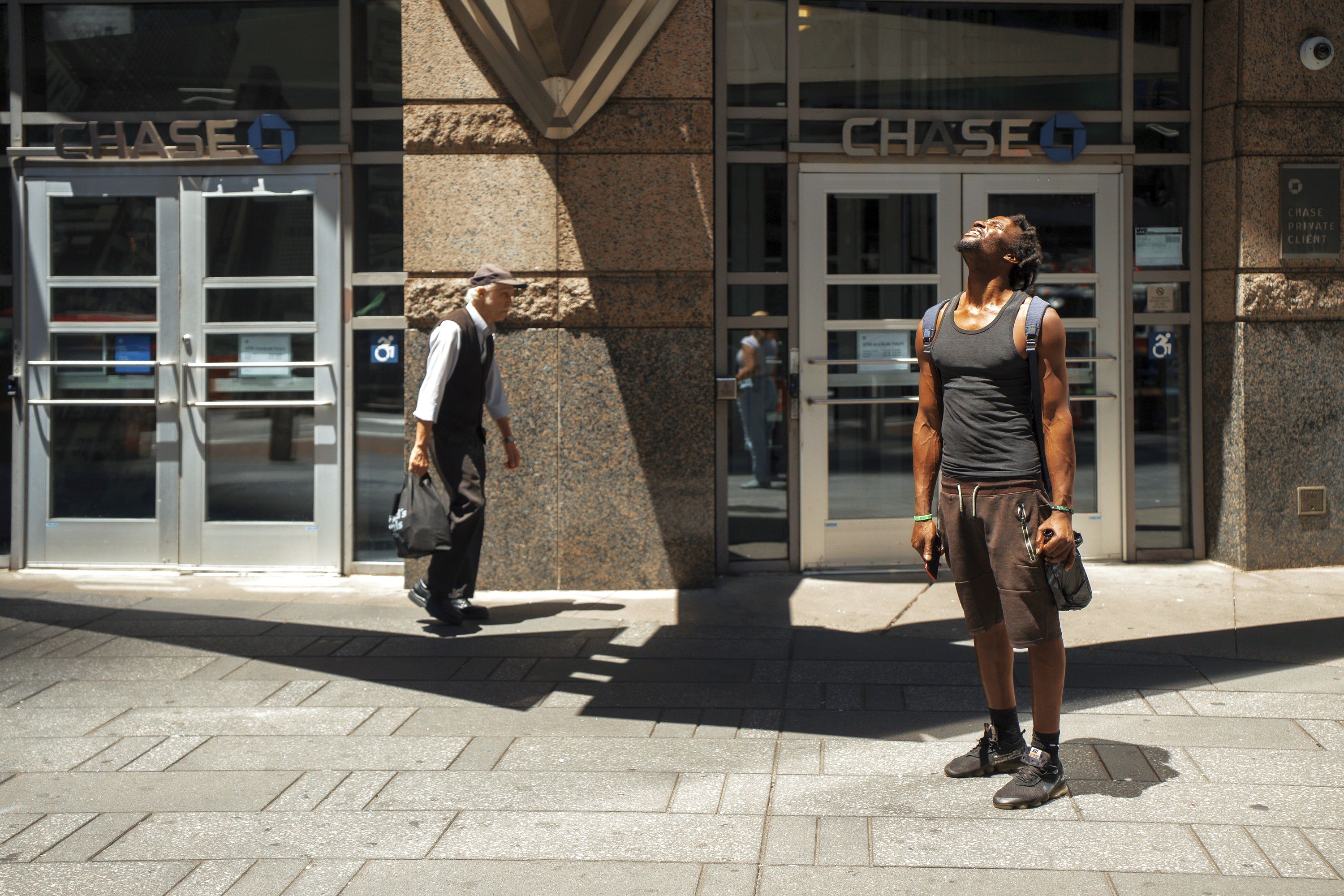 A man squints at the sun during a heat wave on Tuesday, June 24, 2025, in New York. (Photo by Olga Fedorova/AP Photo)