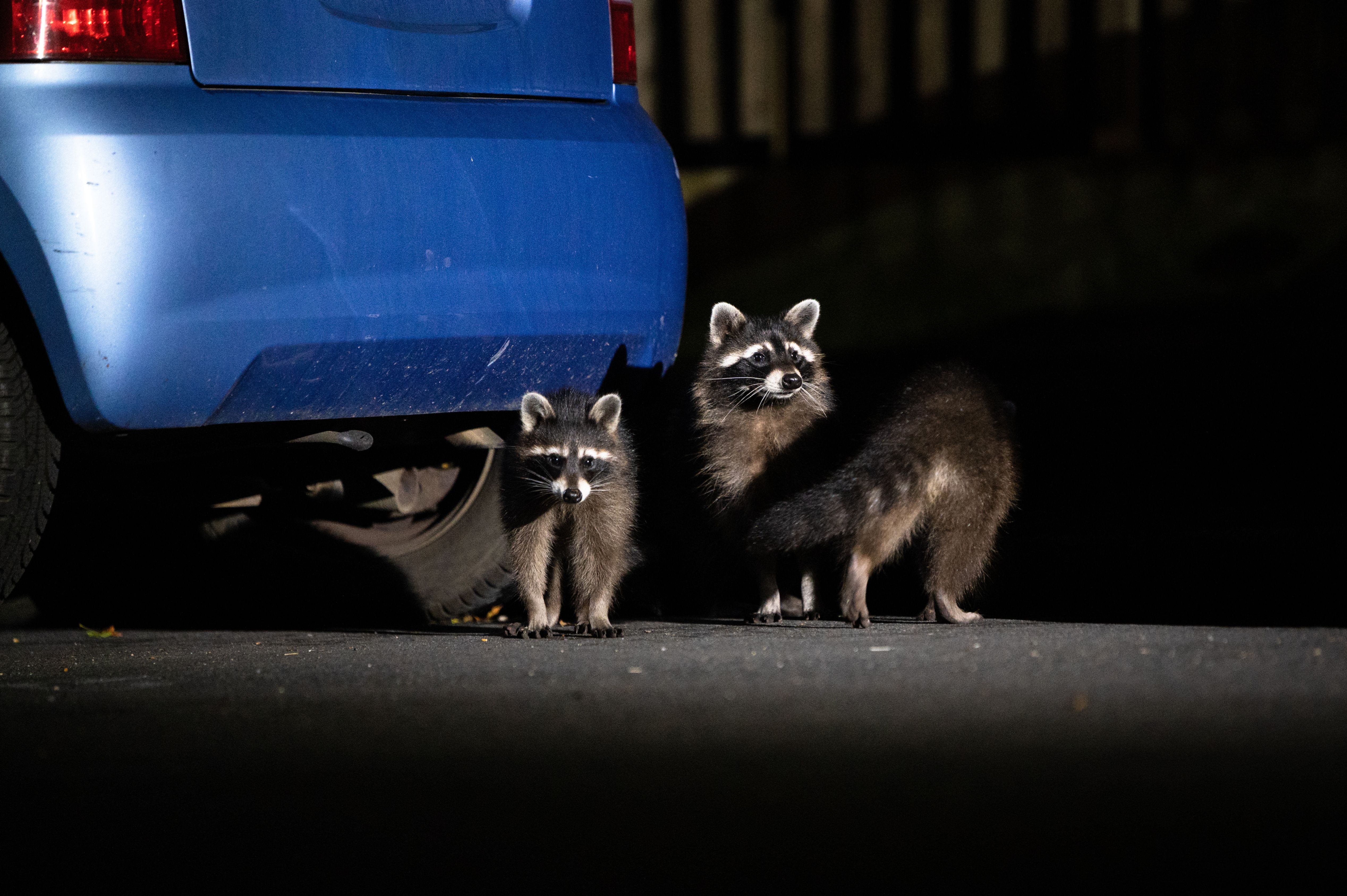 A group of raccoons come out after dark in Kassel, Germany in the last decade of June 2025. There are thousands of raccoons in the city, and while many in the city have embraced the animal, the EU classes it as an invasive species and ecologists are divided about what to do next. (Photo by David Hup)
