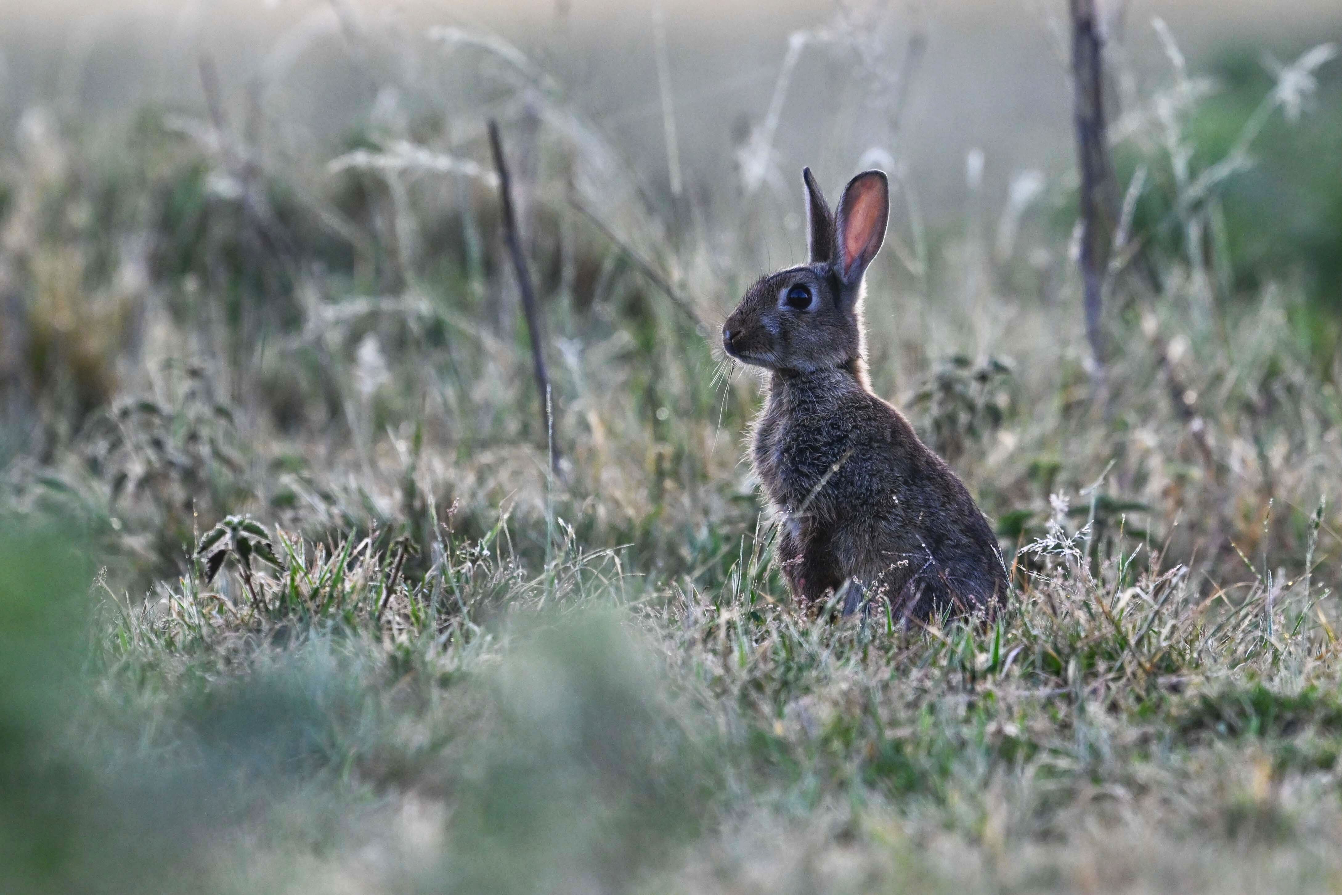 A rabbit is seen foraging for food during sunrise at Bushy Park in London, United Kingdom, on June 13, 2025. The park, known for its diverse wildlife, offers a natural refuge for animals such as rabbits, deer, and various bird species. (Photo by Rasid Necati Aslim /Anadolu via Getty Images)