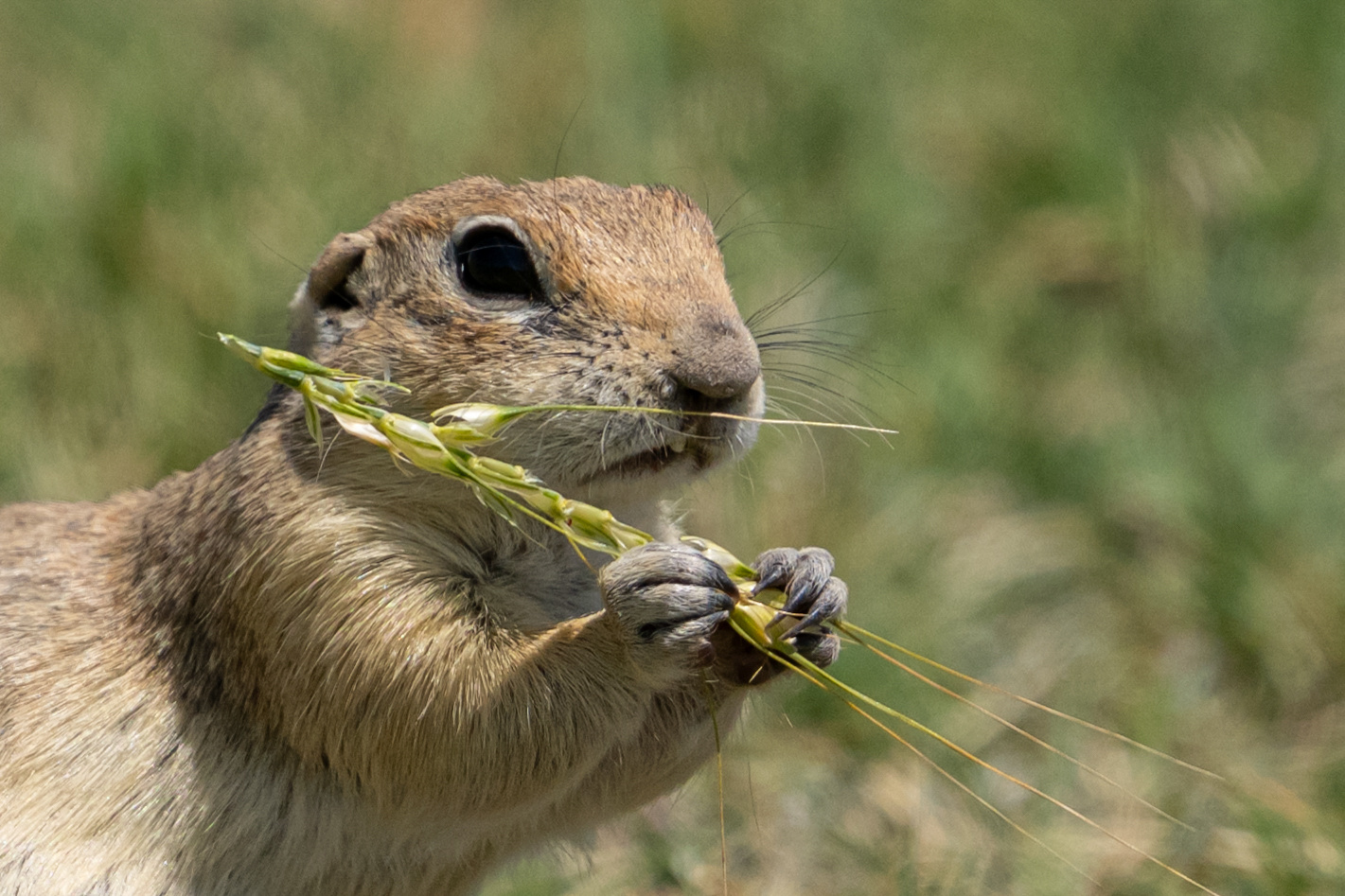 An Anatolian ground squirrel (Spermophilus xanthoprymnus), also known as 'Anadolu gelengisi,' is seen foraging in the rural steppes of Ankara, Turkiye, on June 18, 2025. One of the most common rodent species in the Anatolian plains, these ground squirrels prefer open grazing lands over wooded or cultivated areas, where they struggle to establish burrows or survive due to environmental constraints. (Photo by Harun Ozalp /Anadolu via Getty Images)