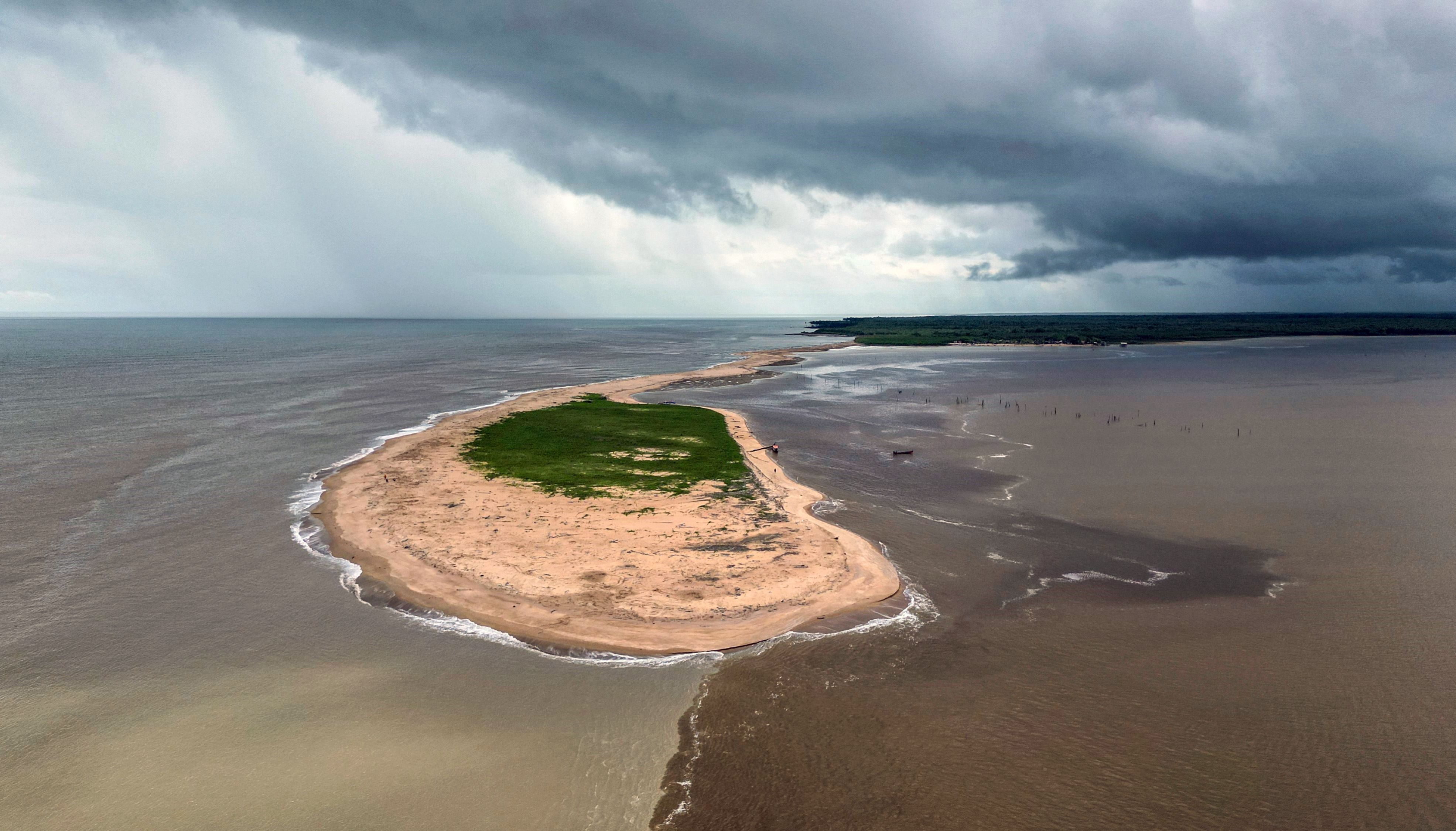 This aerial view shows the Braamsput Island in Paramaribo on May 24, 2025. Suriname, South America's smallest country, is preparing for an inflow of cash from a huge offshore oil find, with the president insisting the population will receive a direct share of the wealth. (Photo by Juan Barreto/AFP Photo)