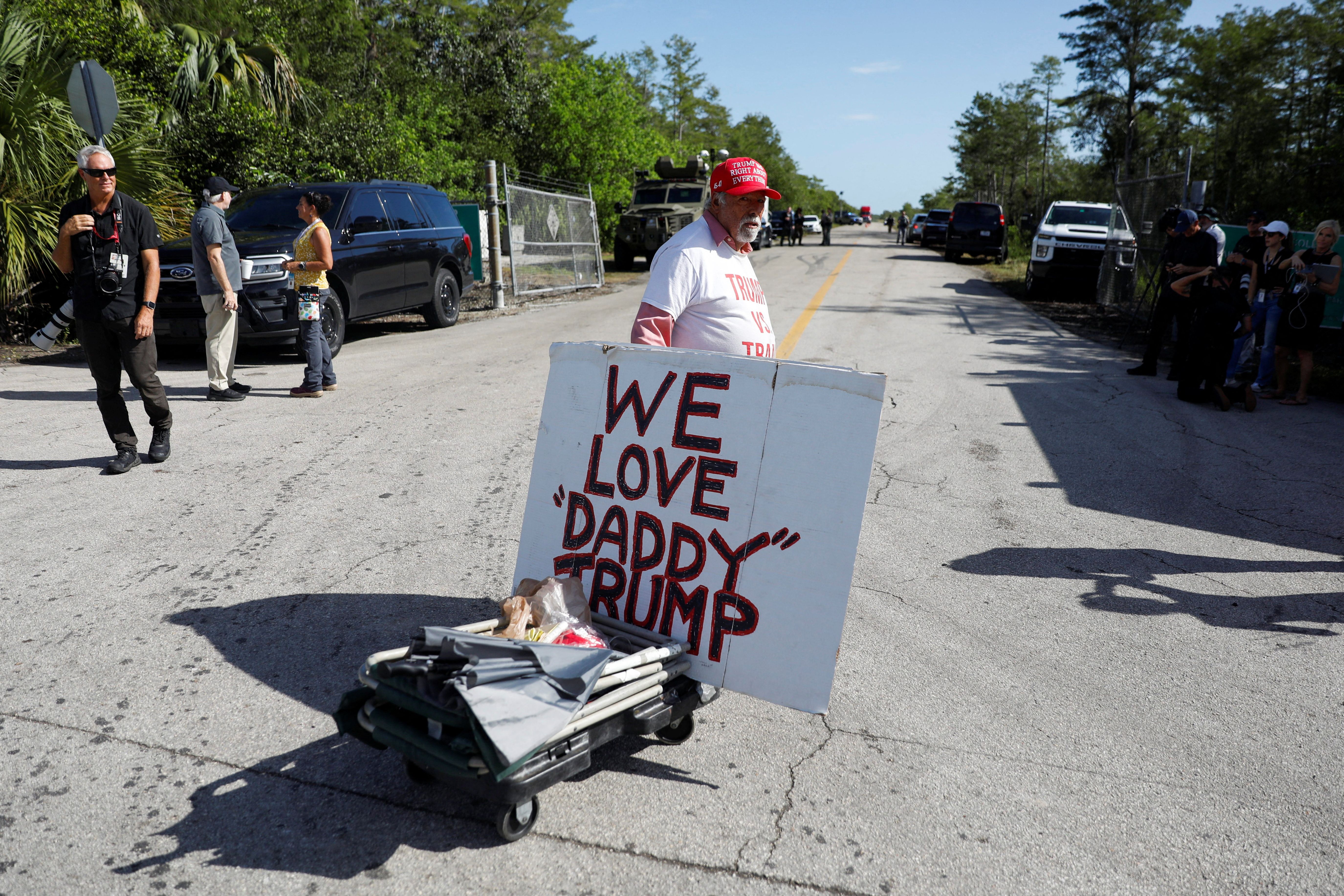 Protester Bob Kunst looks on, as he demonstrates at the entrance road of a temporary migrant detention center, informally known as “Alligator Alcatraz”, on the day President Donald Trump visits the center in Ochopee, Florida, on July 1, 2025. (Photo by Octavio Jones/Reuters)