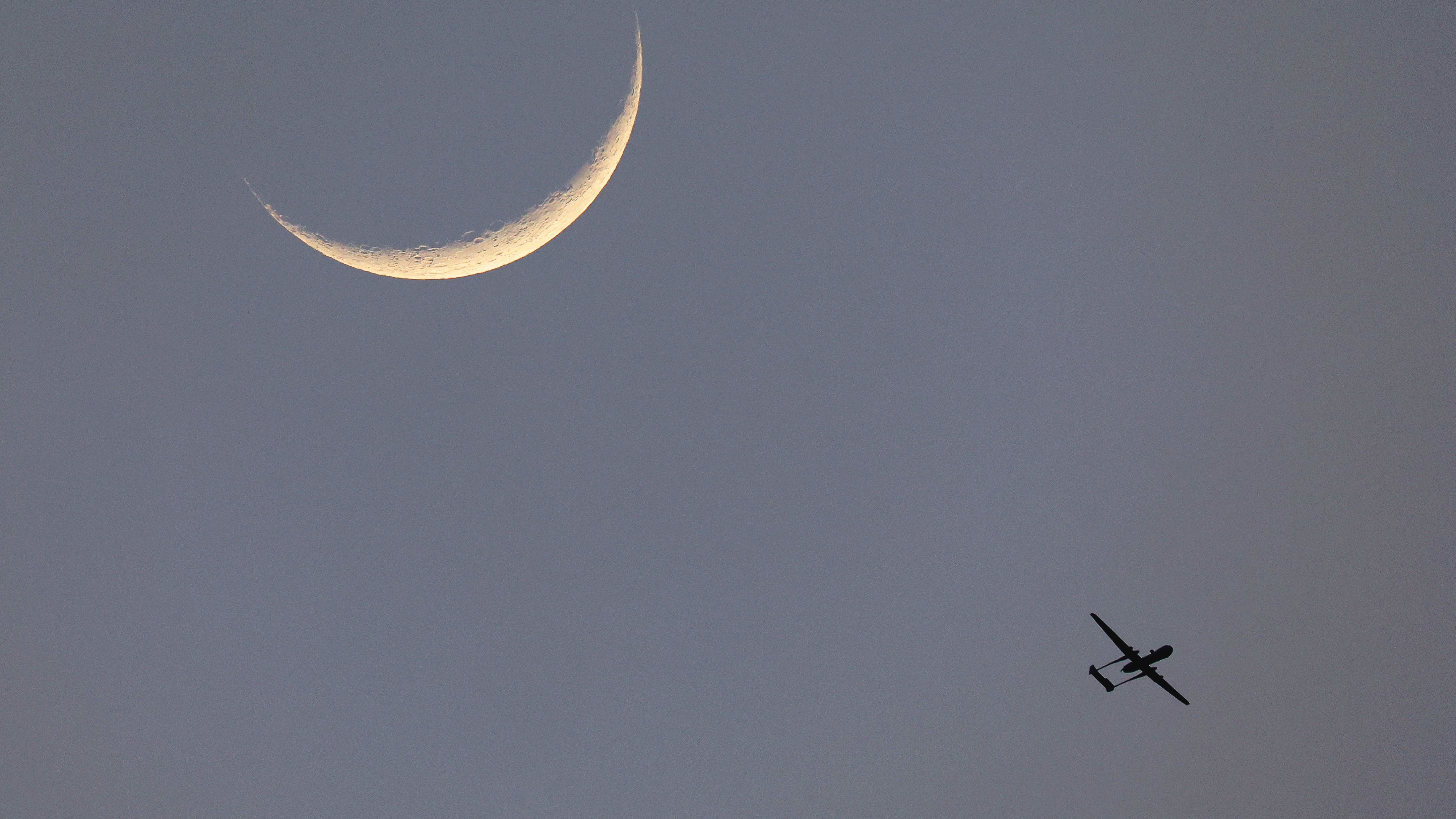 A drone flies over over Gaza Strip as seen from southern Israel, Thursday, May 29, 2025. (Photo by Ohad Zwigenberg/AP Photo)