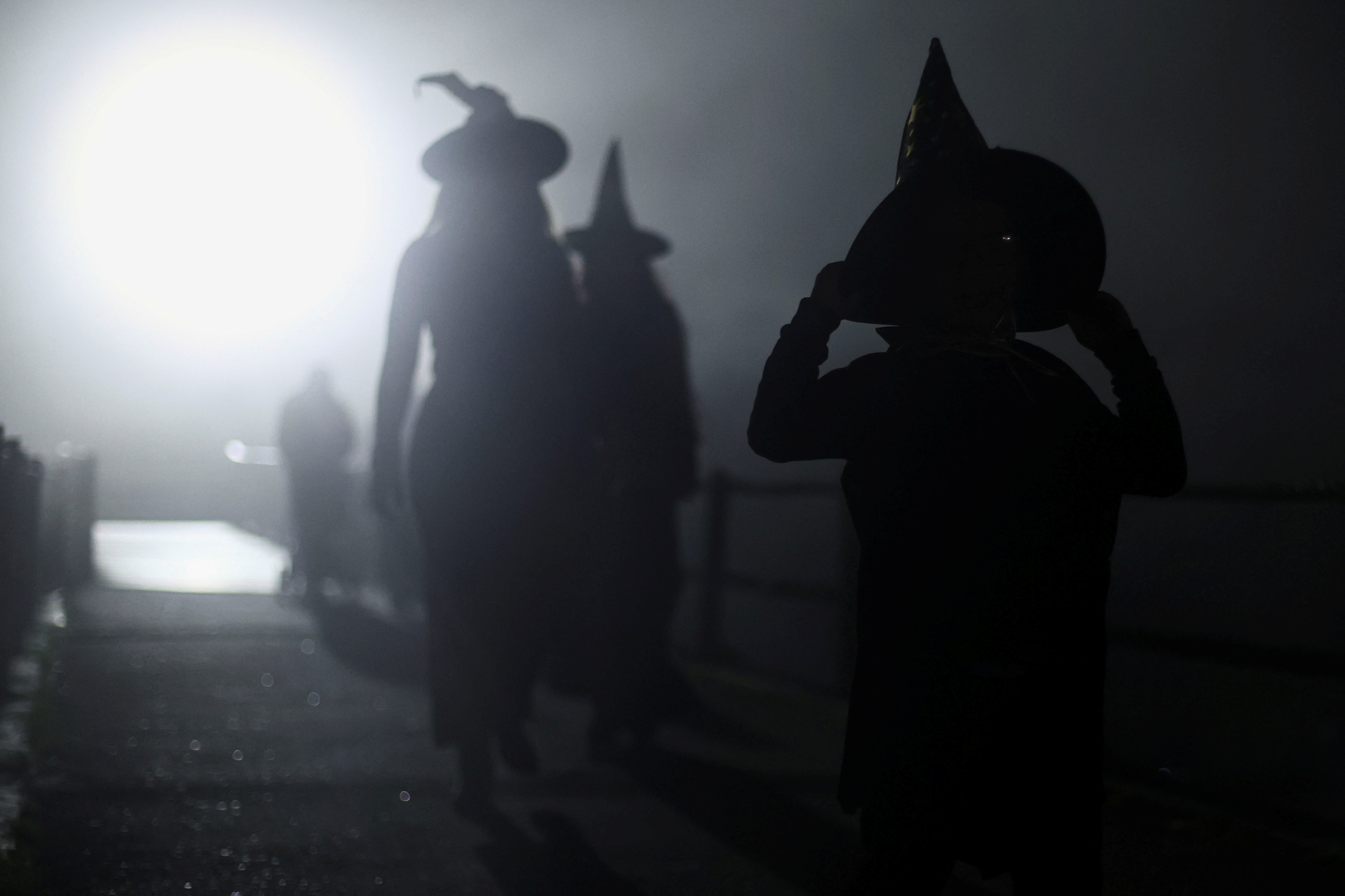 People walk on the street before the opening ceremony of the Witches and Wizards Convention, in the Paranapiacaba village, in Santo Andre, Brazil on May 16, 2025. (Photo by Jean Carniel/Reuters)