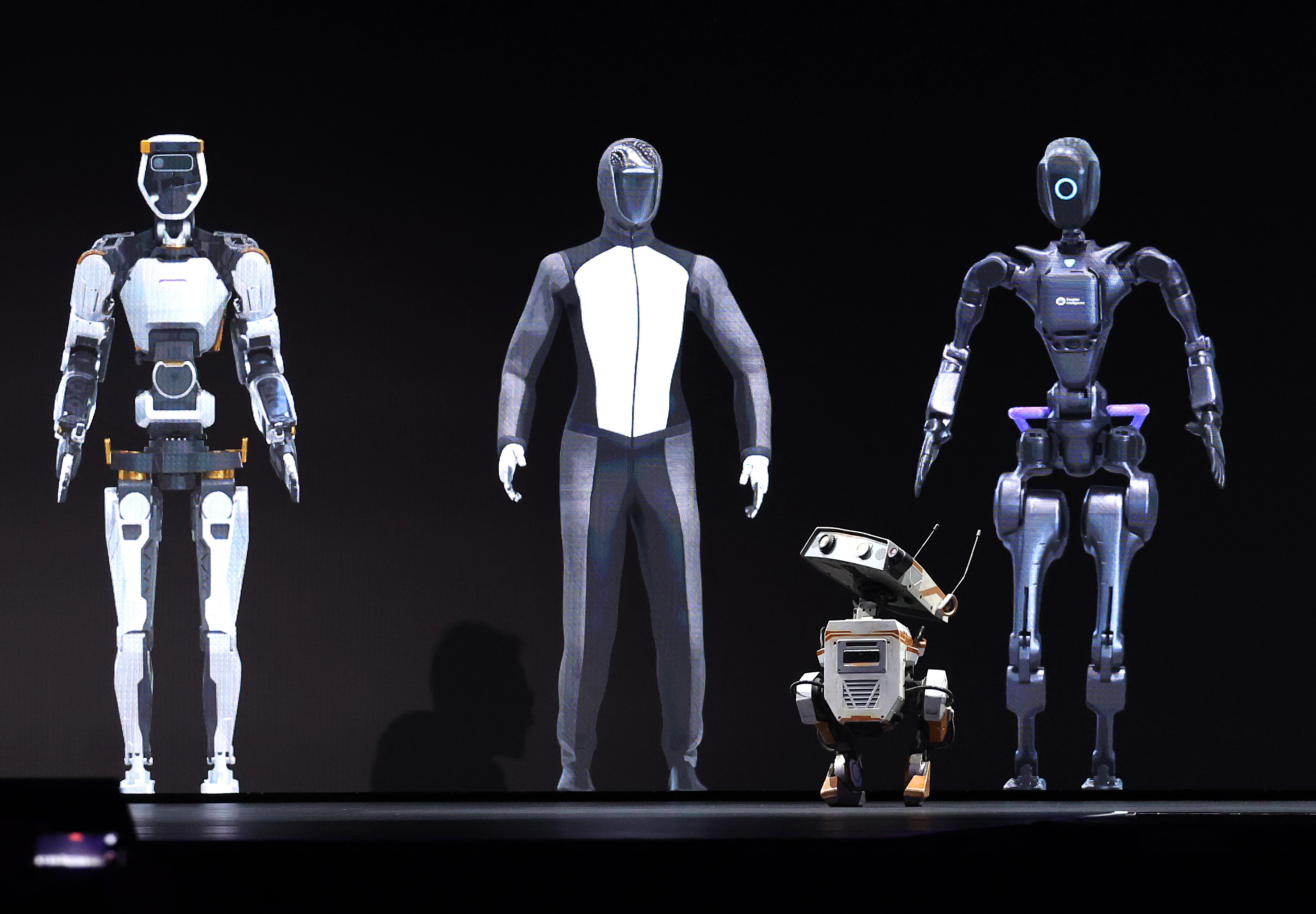 A robot appears on stage as Nvidia CEO Jensen Huang delivers a keynote address during the Nvidia GTC Artificial Intelligence Conference at SAP Center on March 18, 2024 in San Jose, California. The developer conference is expected to highlight new chip, software, and AI processor technology. (Photo by Justin Sullivan/Getty Images)
