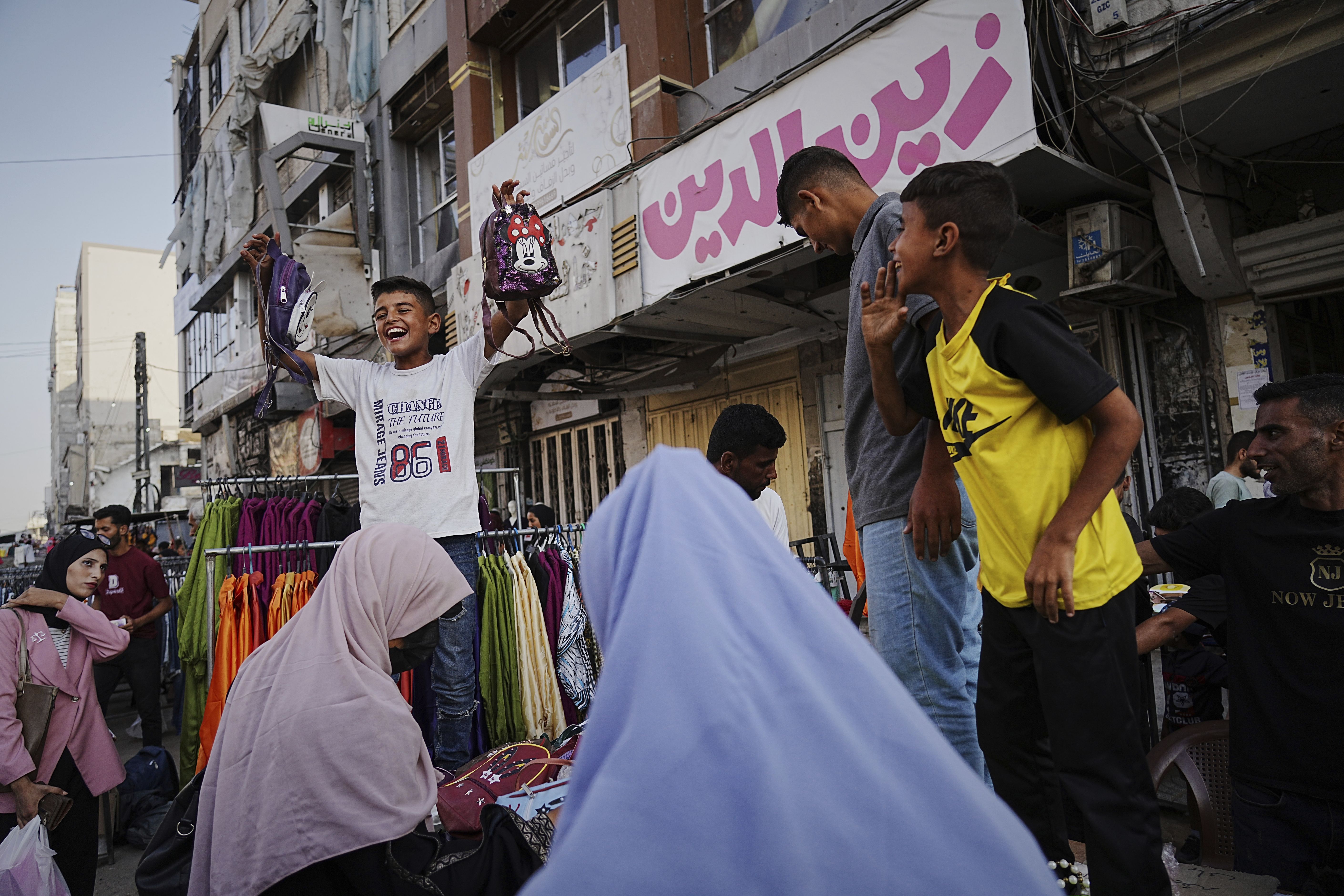 Palestinians walk trough a market ahead of the Muslim holiday of Eid al-Adha, in Gaza City on Thursday, June 5, 2025. (Photo by Jehad Alshrafi/AP Photo)