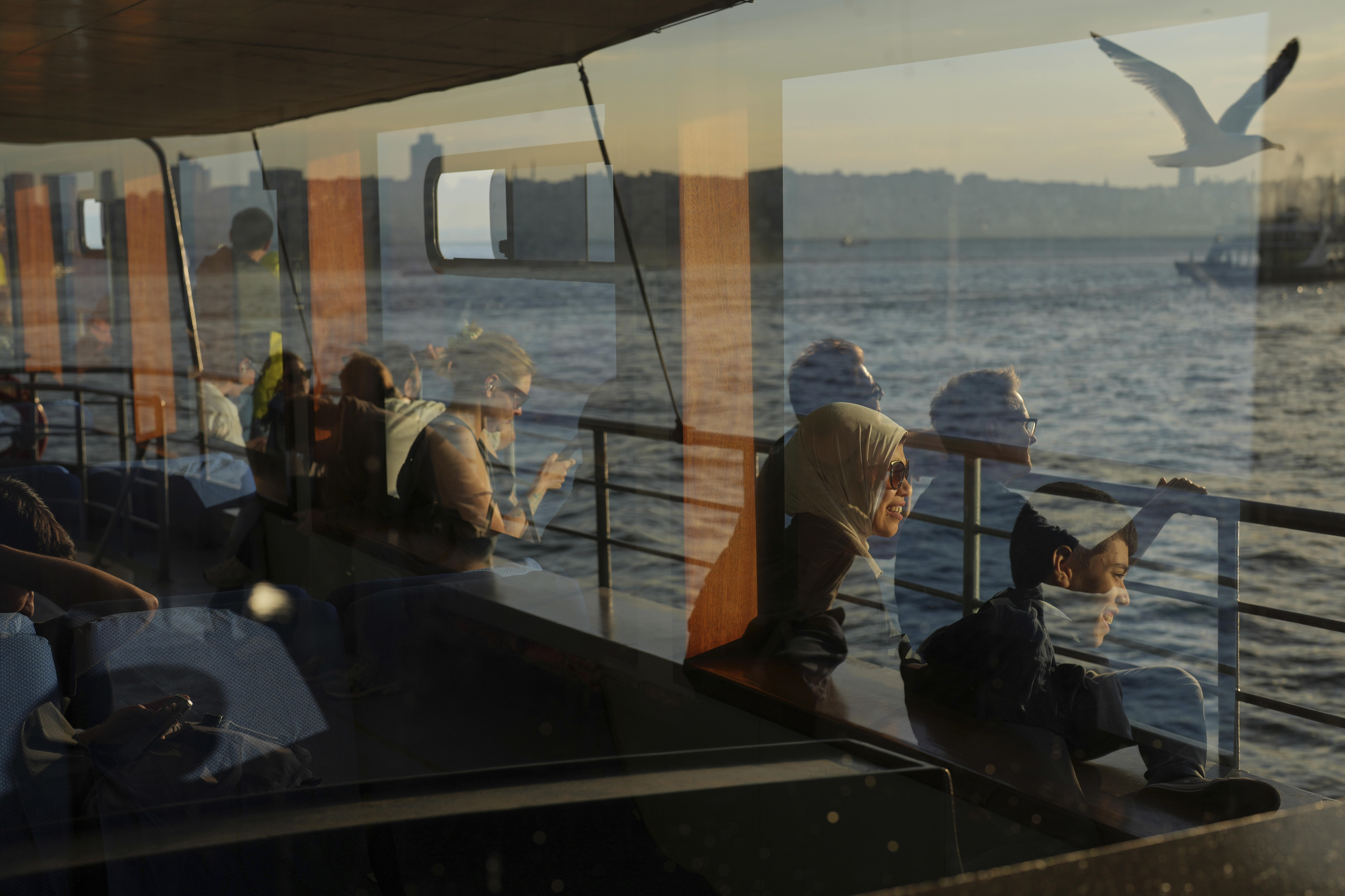 Passengers take a ride in a ferry crossing the Bosphorus in Istanbul, Turkey, Tuesday, May 27, 2025. (Photo by Francisco Seco/AP Photo)