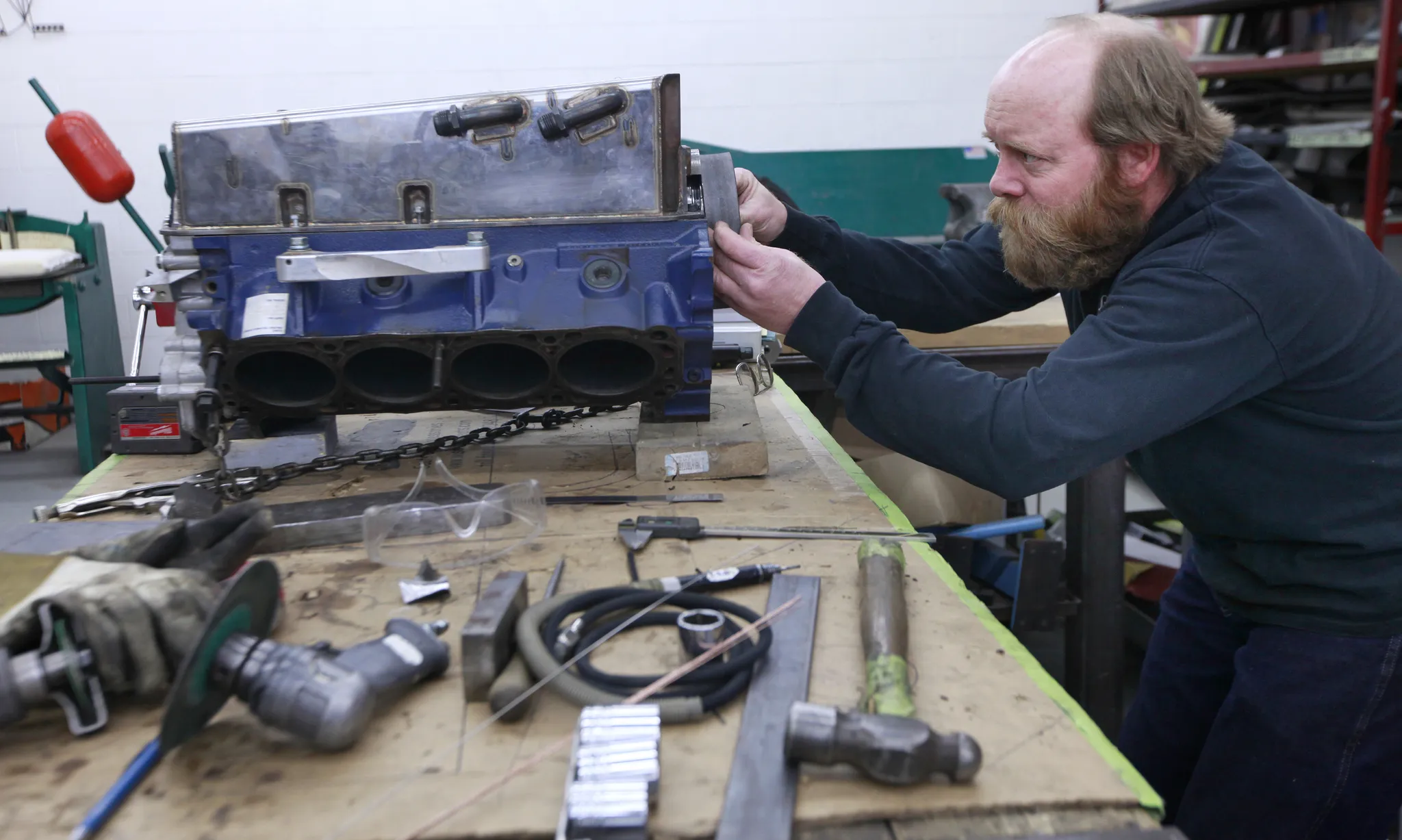 Blaine Downer modifies an engine Tuesday, March 5, 2013 at L'Cars Automotive Specialties in Cameron, Wis. The company which does high-end restoration and customization work classic cars that have won awards at the world-renowned Pebble Beach Concours d'Elegance. Winning cars include a 57c Bugatti, Rolls Royce PIII V12, V12 Aero coupe, T44 Bugatti, T55 Bugatti, T38A Bugatti, Mercedes Benz 290 Roadster, Rolls Royce Silver Ghost, T57 Bugatti, 1929 Duesenberg J, Mercedes Benz 540K cabriolet, Talbot Teardrop and a 1931 V16 Cadillac convertible. (Photo by Mark Hoffman)
