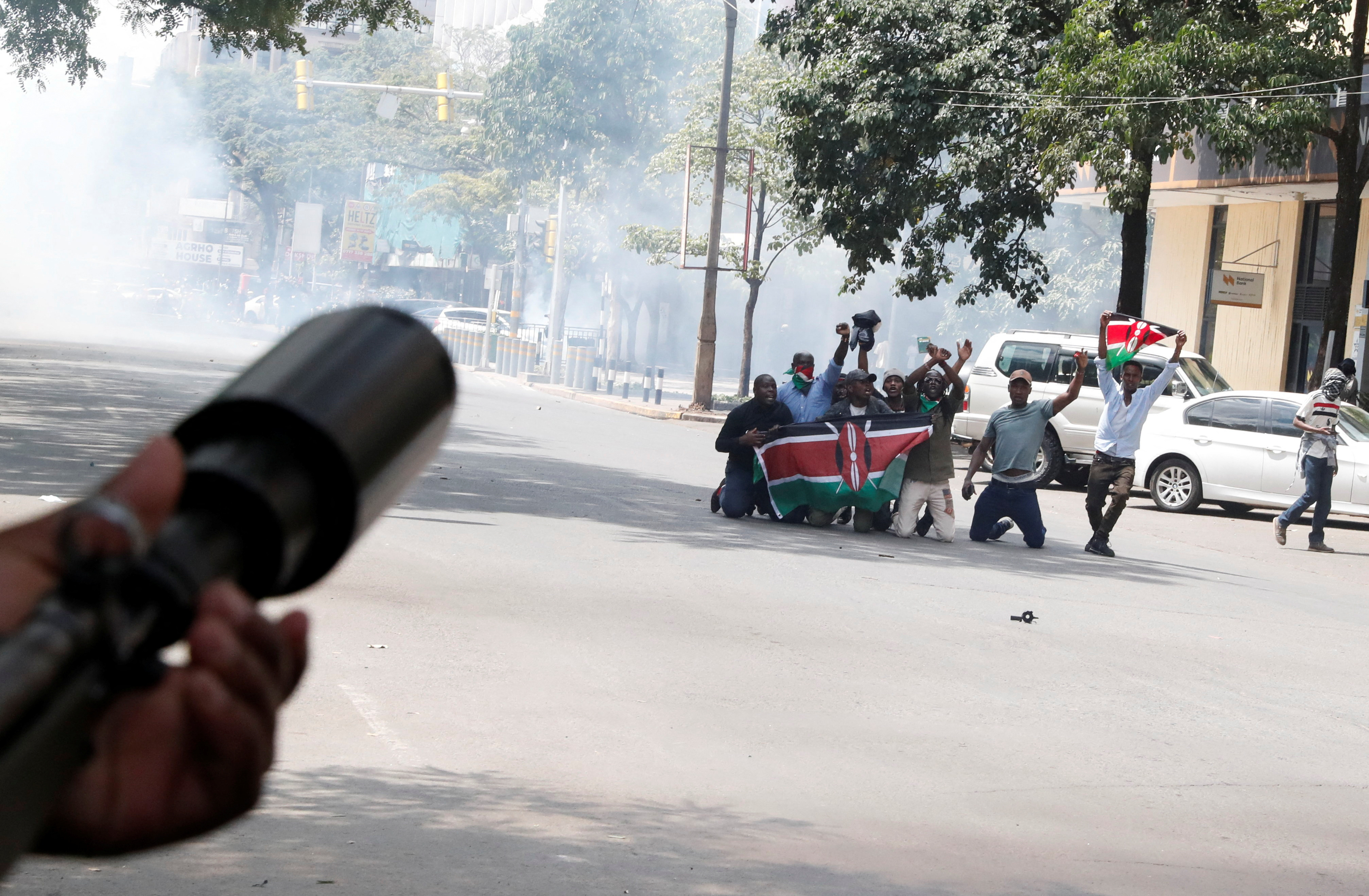 Riot police officers fire teargas canisters as they attempt to disperse protestors demonstrating against the death of a blogger in police custody last week, in downtown Nairobi, Kenya on June 12, 2025. (Photo by Thomas Mukoya/Reuters)