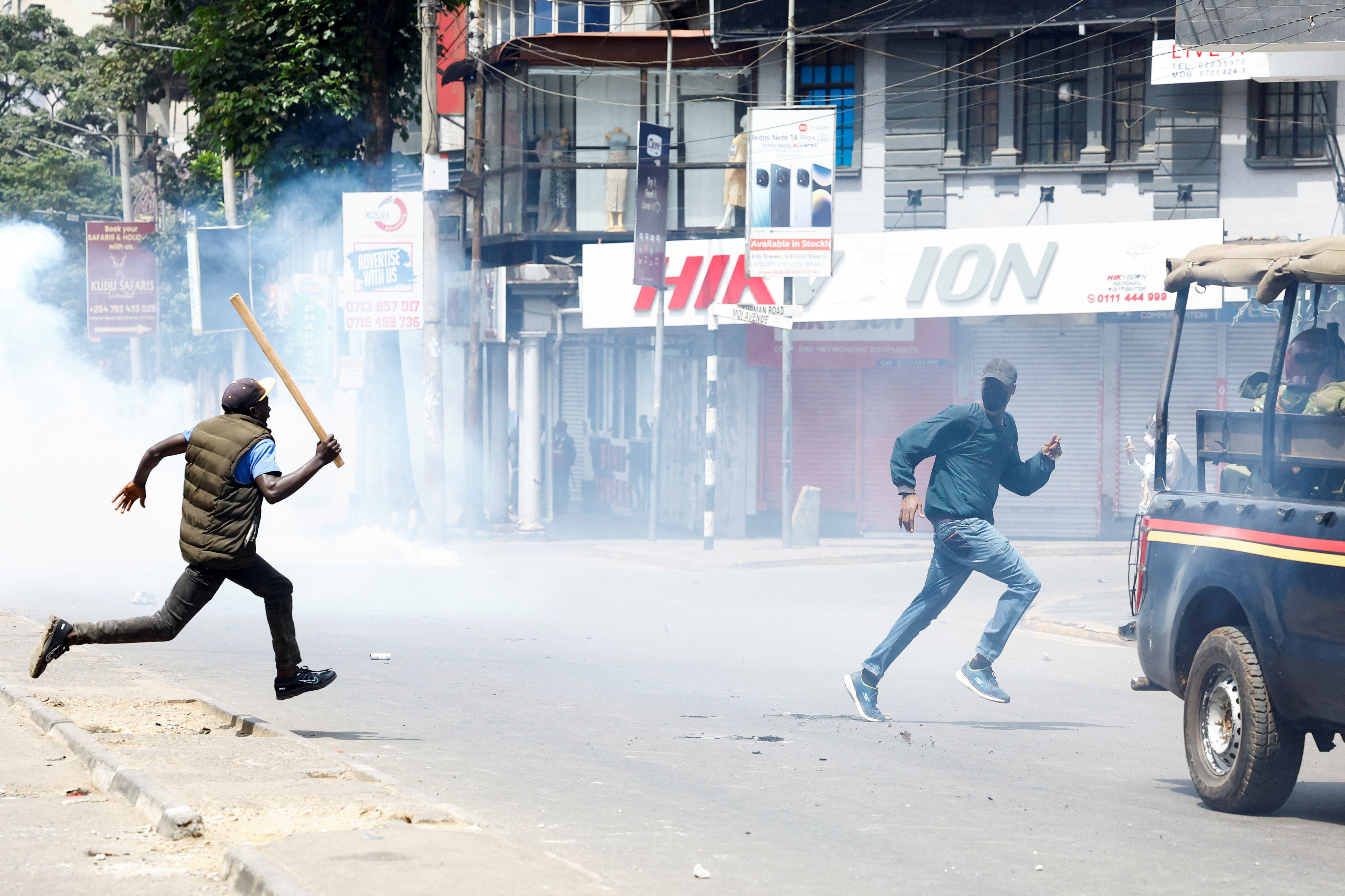 A pro-government counter-protester holds a wooden club as he runs during a protest over the death of Kenyan blogger Albert Ojwang in police custody, in downtown Nairobi, Kenya on June 17, 2025. (Photo by Thomas Mukoya/Reuters)