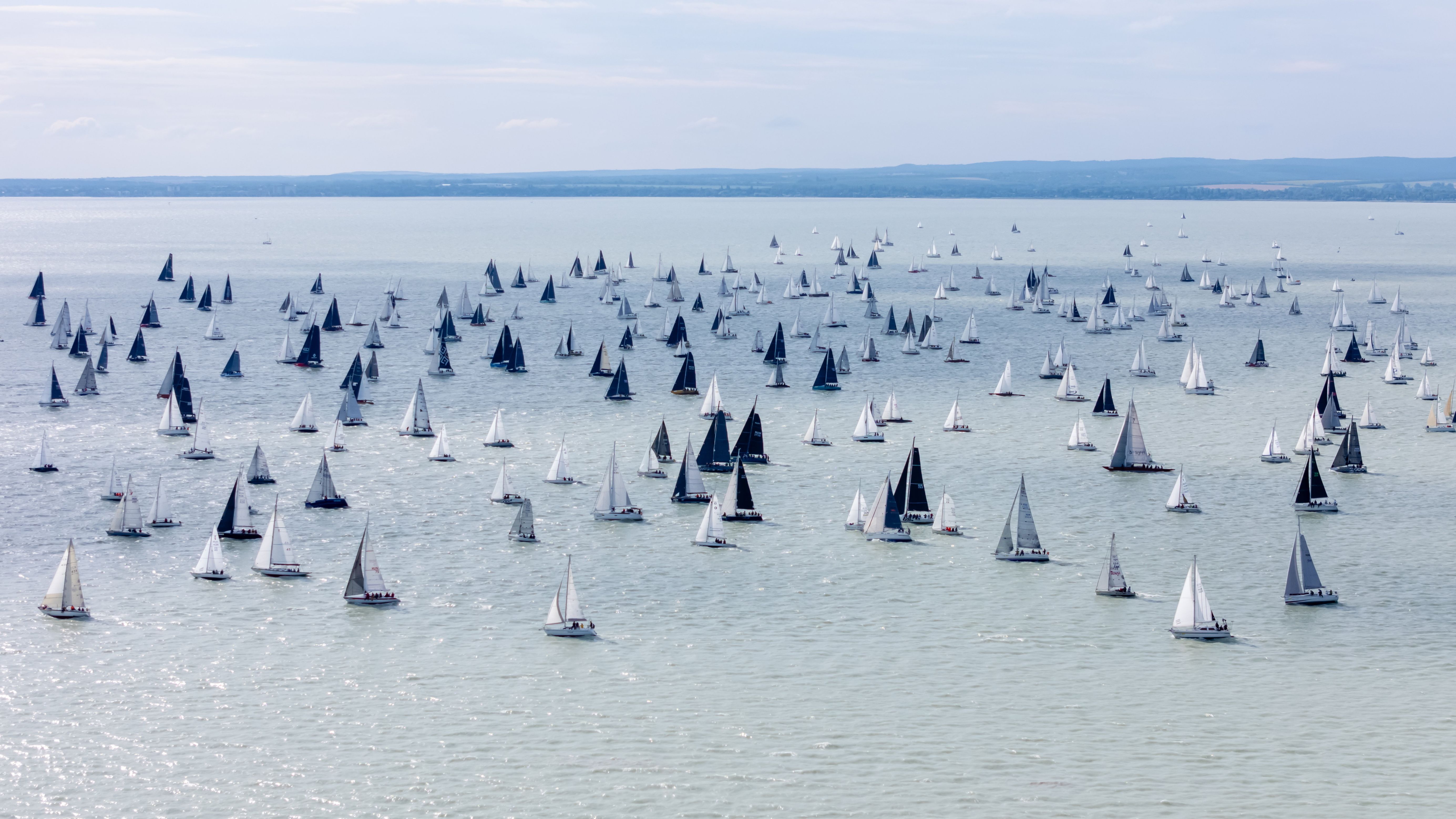 Sailboats compete after the start of the 57th Blue Ribbon round-the-lake international yachting race around Lake Balaton near Balatonfuered, Hungary, 10 July 2025. This year more than 470 sailboats started the 155 kms race. (Photo by Tamas Vasvari/EPA)