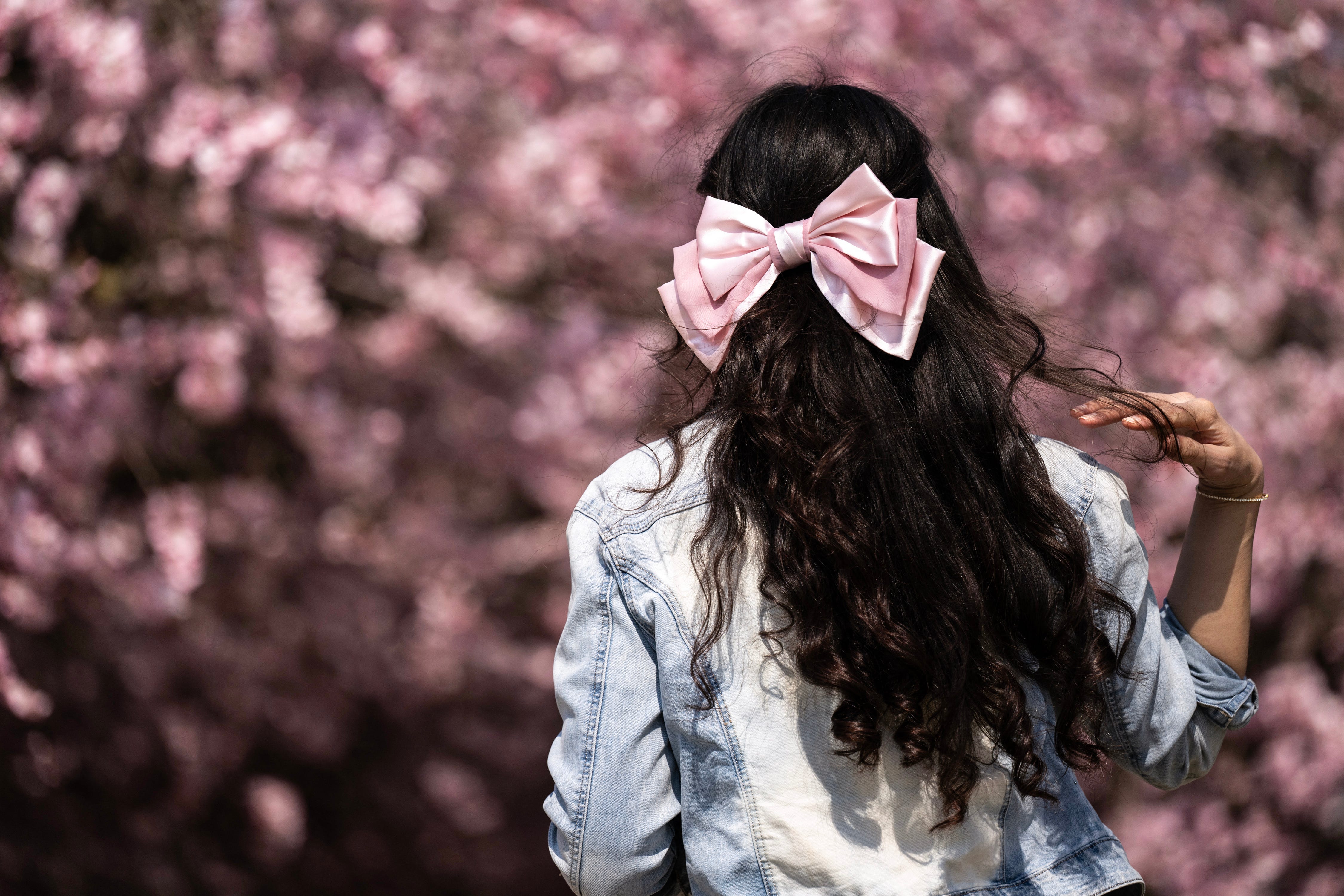 A woman gestures near cherry blossoms in the gardens of the Reggia of Venaria Reale near Turin on March 26, 2025. (Photo by Marco Bertorello/AFP Photo)