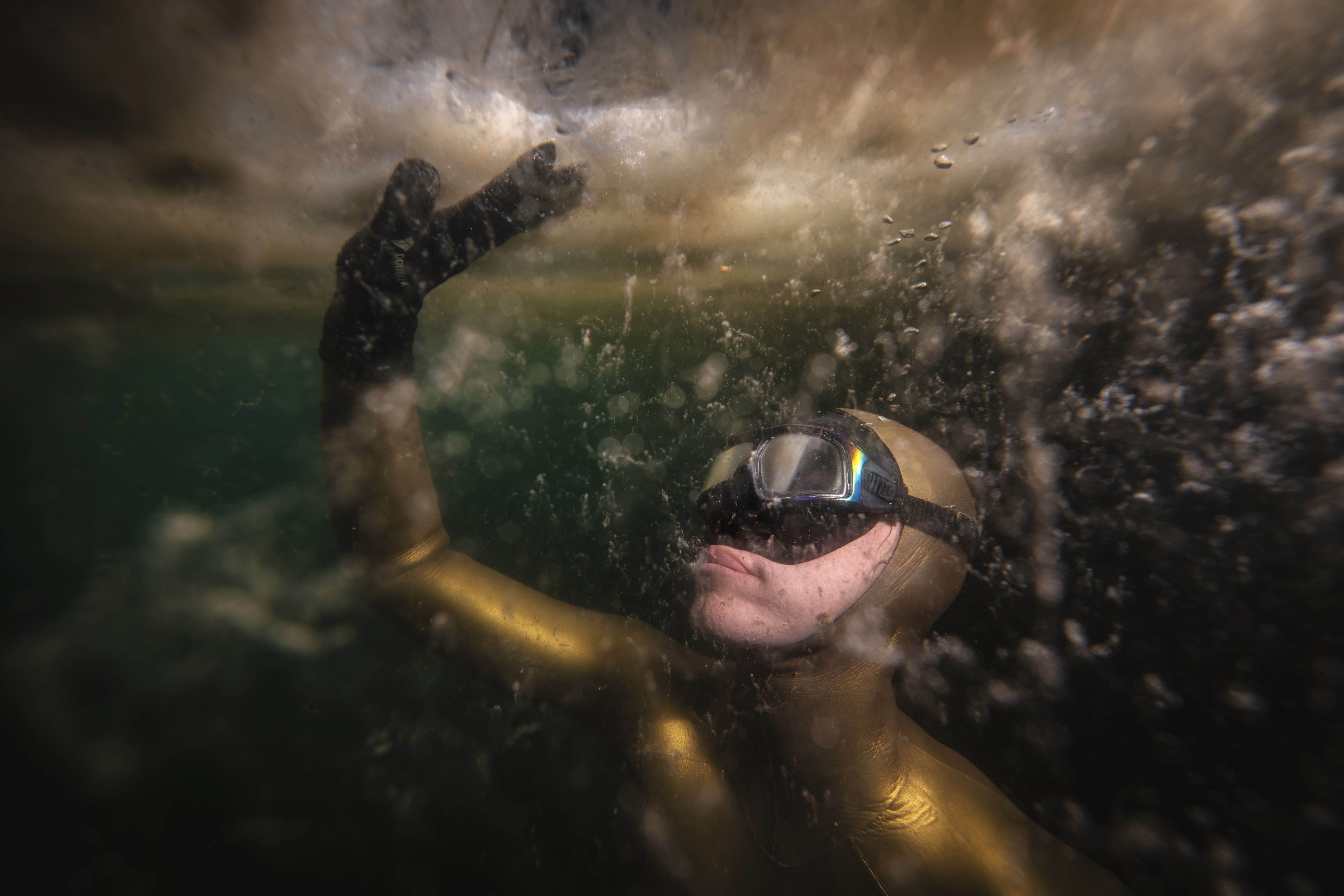 United Nations Development Program (UNDP) Turkiye's “Defender of Life in Water” World Free Diving Record Holder Sahika Ercumen dives into the depths of Marmara Sea with a single breath for mucilage (sea saliva), which has become more visible in recent years, in Balikesir, Turkiye on May 24, 2025. Mucilage in the Marmara Sea is driven by a combination of rising sea surface temperatures, the discharge of untreated waste into the water, and the sea's unique semi-enclosed structure that limits water circulation. Following the major outbreak in 2021, monitoring and cleanup efforts have continued, with experts reporting partial improvements despite periodic increases in mucilage levels. (Photo by Sebnem Coskun/Anadolu via Getty Images)