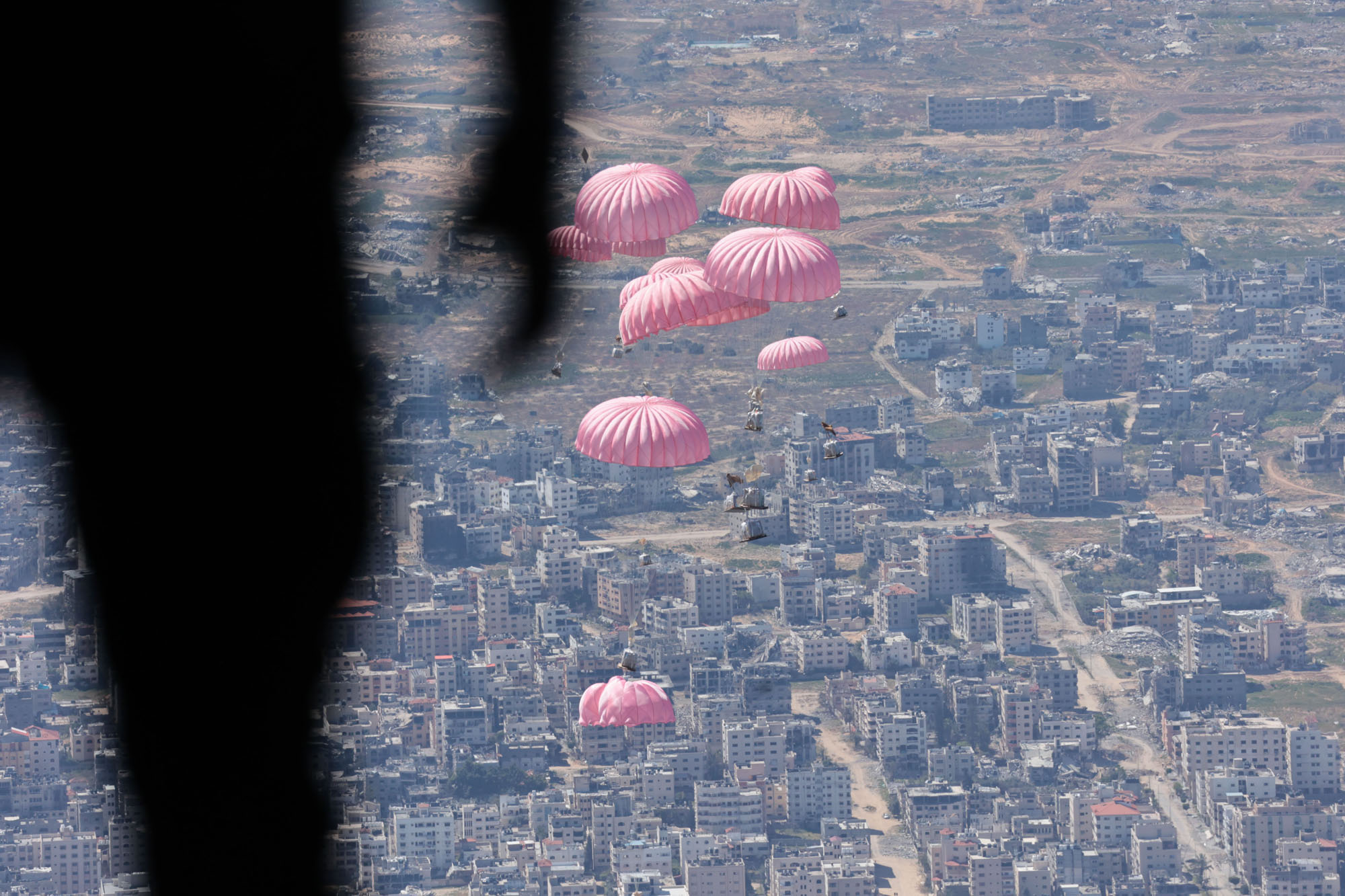 Jordanian Armed Forces personnel carry out an airdrop on March 15, 2024 over northern Gaza. Expensive Airdrops are considered inefficient by the aid community and the last resort for food delivery, but Jordan has dropped tons of food over Gaza in the 5-month-old war and hopes it will save some lives. Airdrops carried out by the Jordanian Armed Forces – the Arab Army, to date, has risen to 46 Jordanian airdrops, and 63 airdrops in cooperation with friendly countries. (Photo by Jordan Pix/Getty Images)