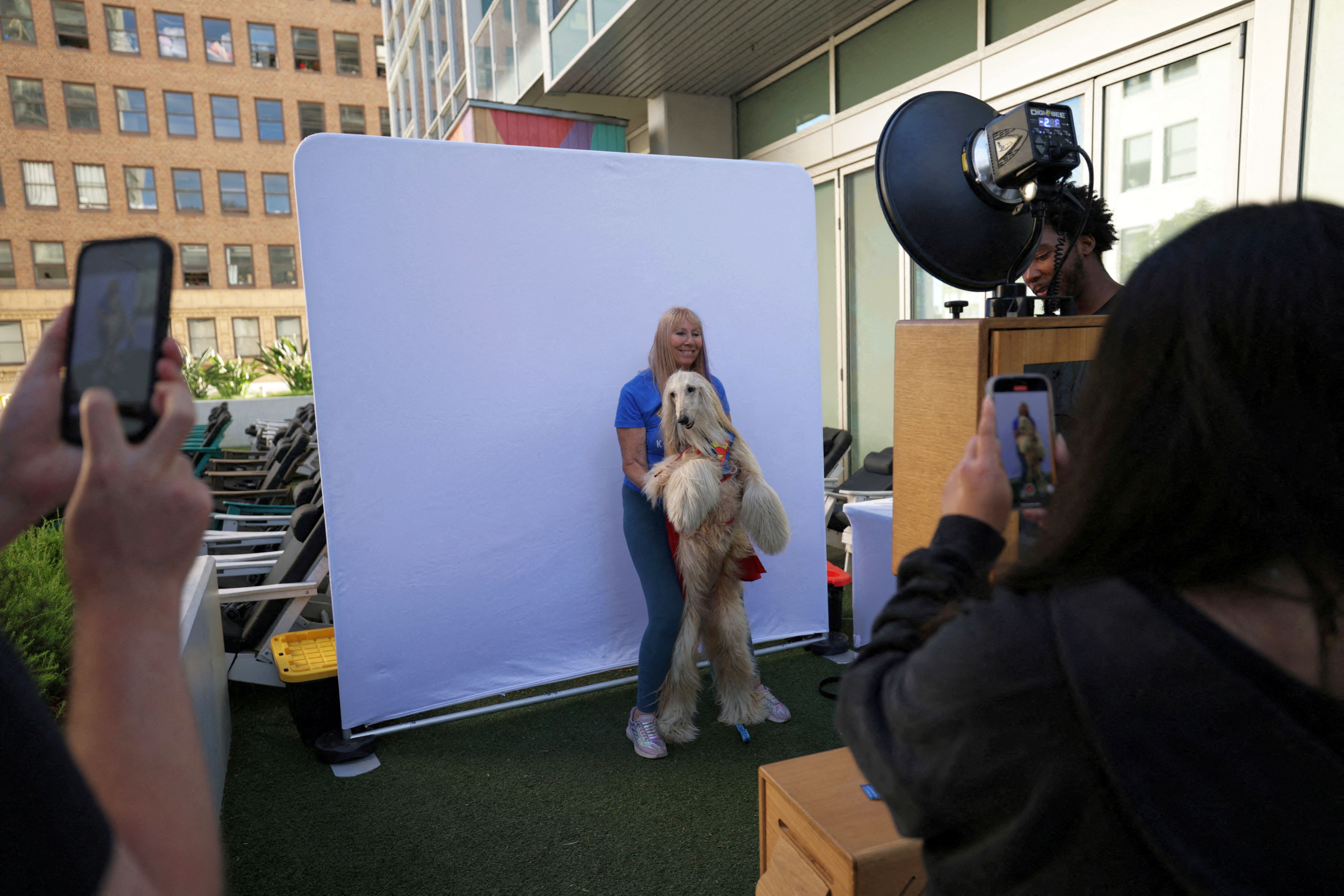 Moviegoer Terre and her dog Shai pose for a photo before a special screening of the film Superman in Los Angeles, California on July 11, 2025. (Photo by Mario Anzuoni/Reuters)