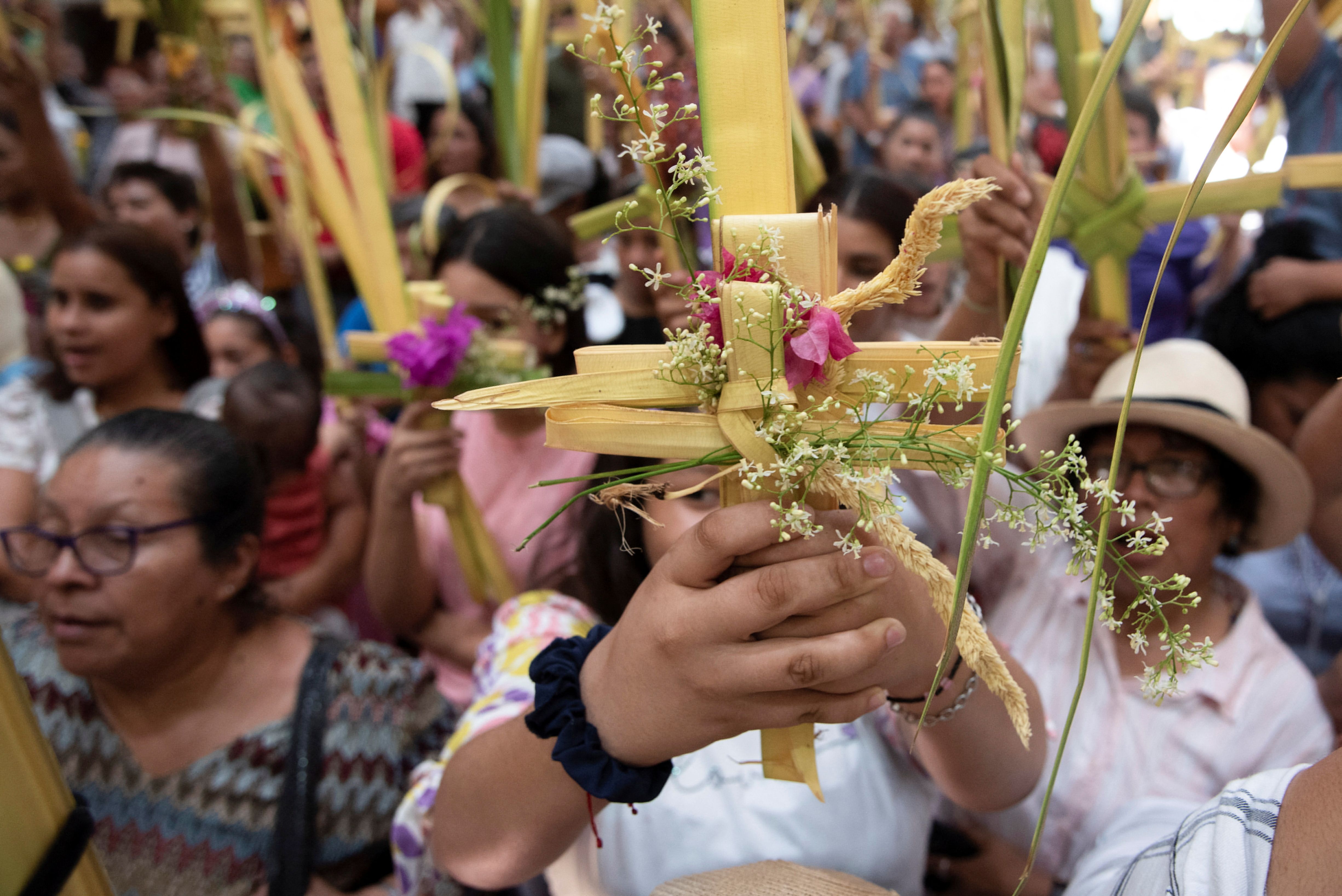 People raise their palm fronds for blessings during a Palm Sunday mass in Managua, Nicaragua, on March 24, 2024. (Photo by Maynor Valenzuela/Reuters)