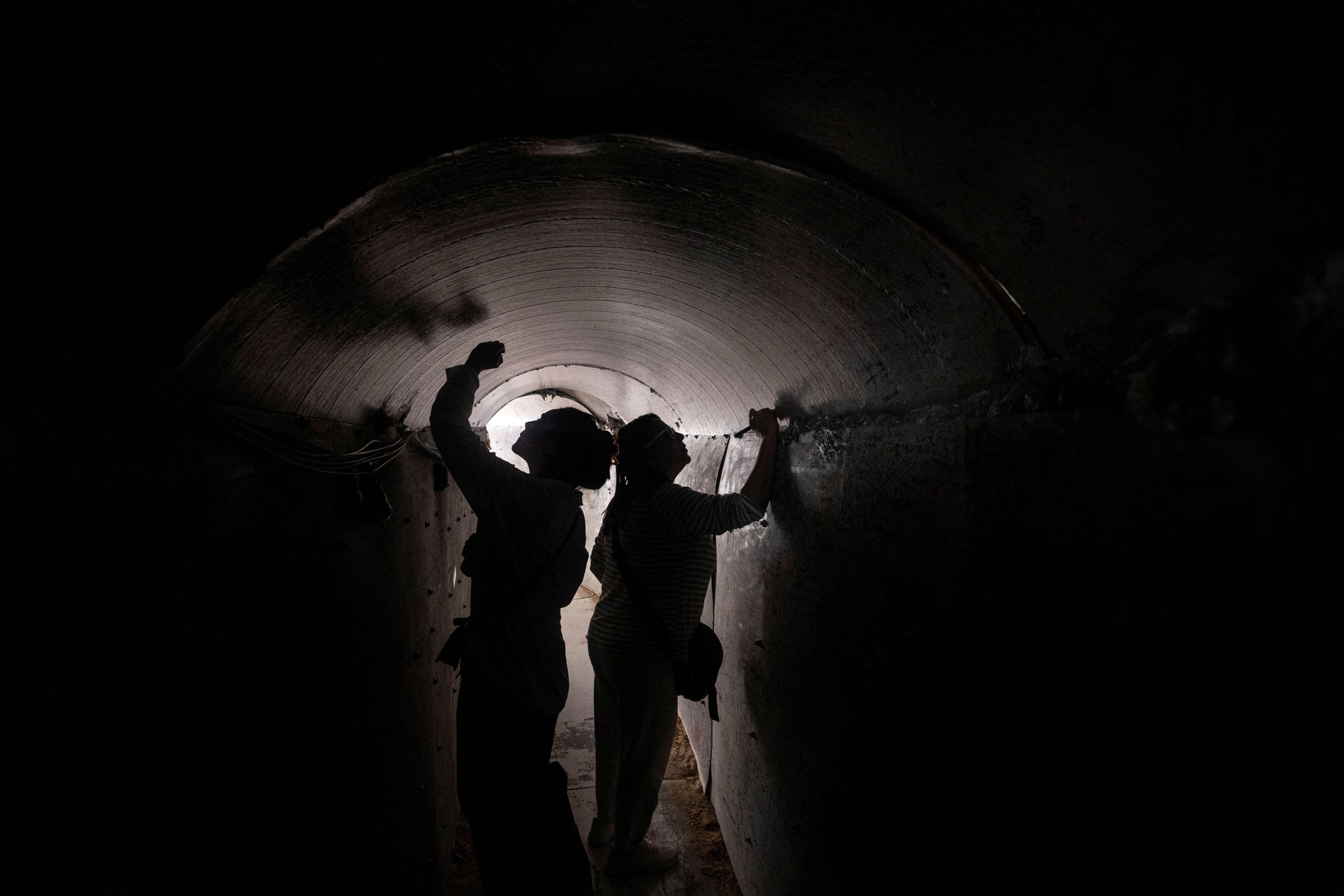 Visitors leave messages at a symbolic installation of a Hamas tunnel, amid the ongoing conflict between Israel and the Palestinian Islamist group Hamas, in a public square in Tel Aviv, Israel on March 12, 2024. (Photo by Nir Elias/Reuters)