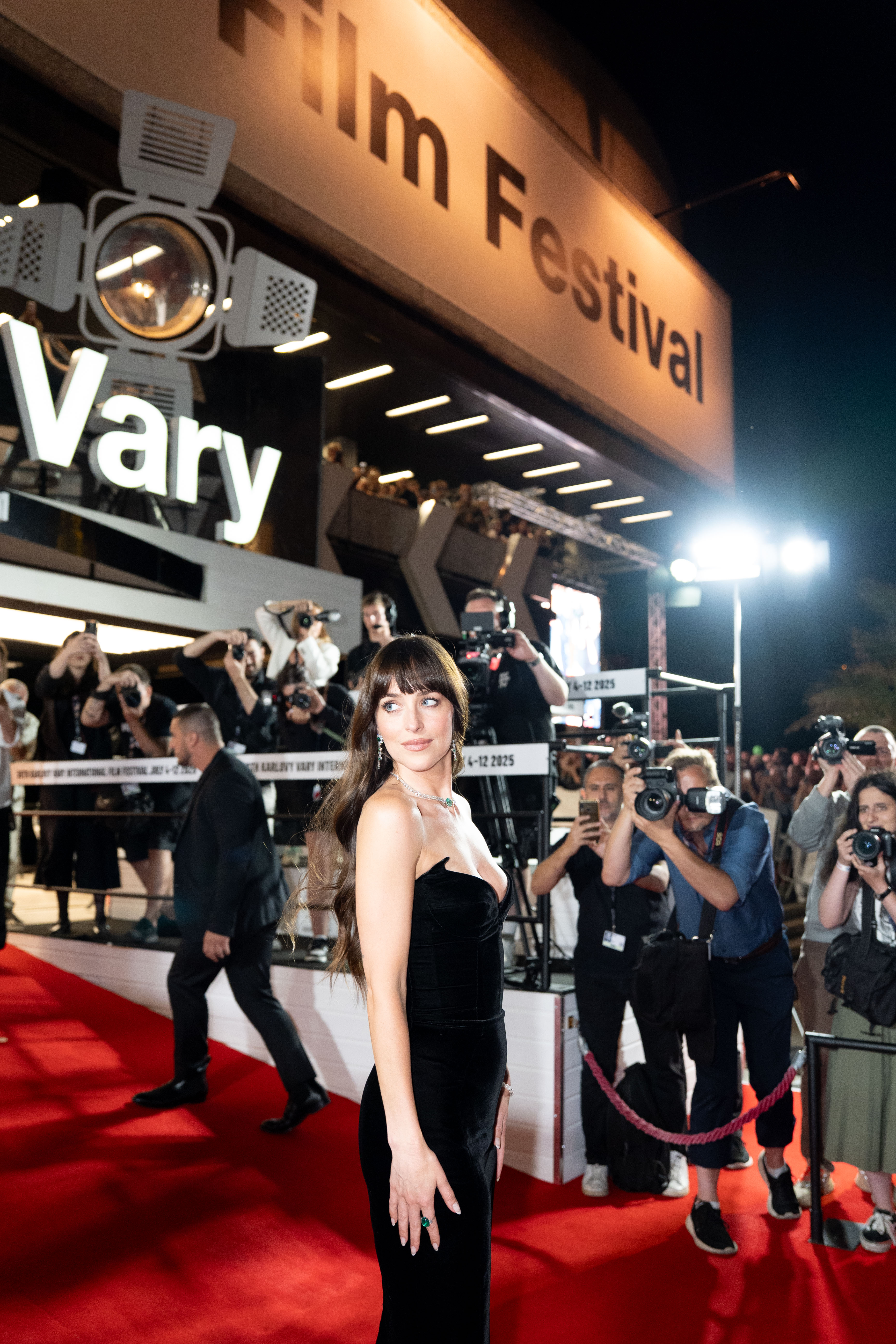 American actress Dakota Johnson poses on the red carpet during the 59th Karlovy Vary International Film Festival on July 5, 2025 at Spa Hotel Thermal in Karlovy Vary, Czech Republic. (Photo by Gabriel Kuchta/Getty Images)