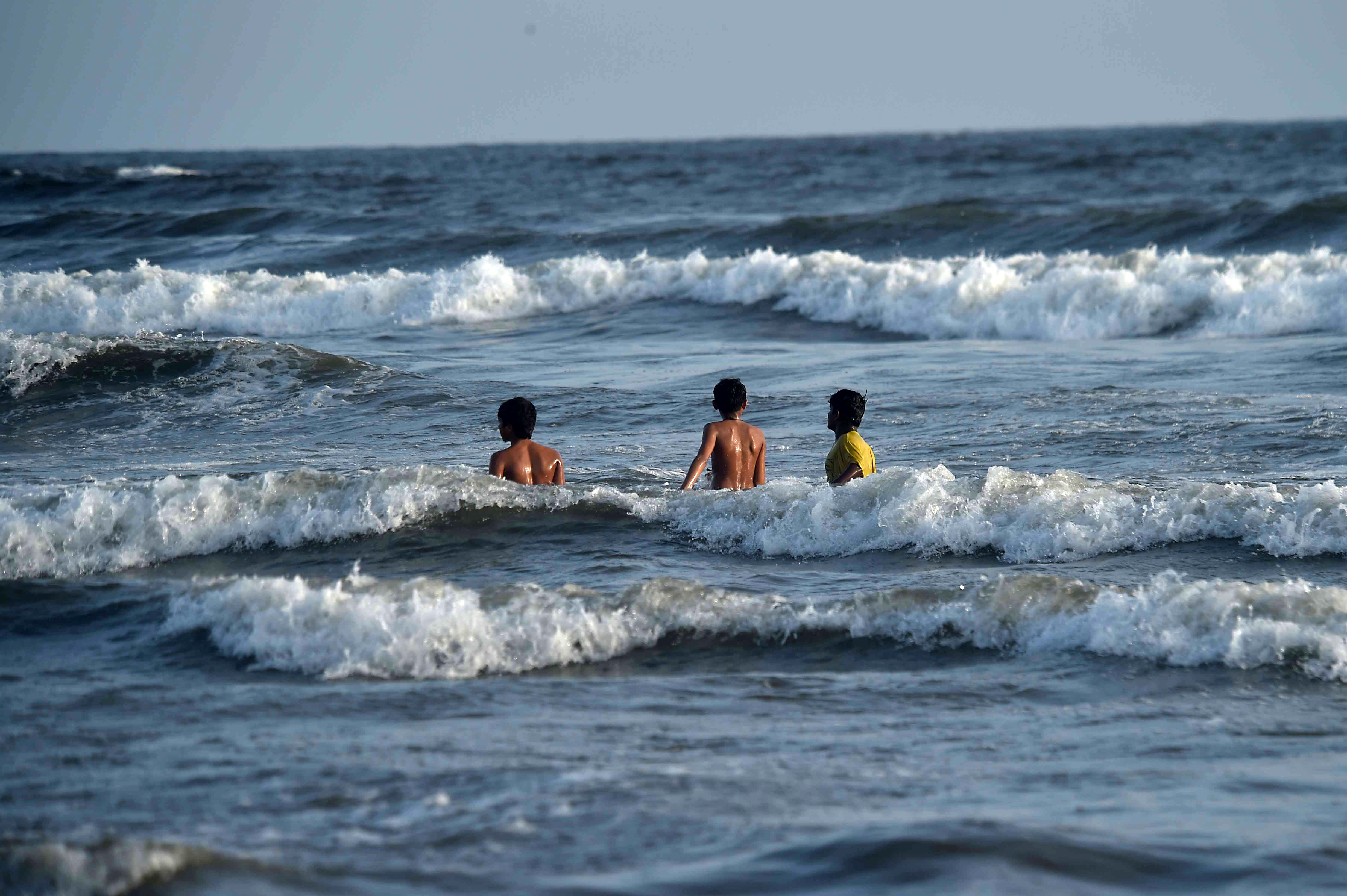 People cool off in the Arabian Sea during a heatwave in Karachi, Pakistan, 22 May 2025. The Pakistan Meteorological Department has forecasted a severe heatwave from 19 May, with temperatures in Sindh reaching 46–48°C and other regions seeing 4–8°C above-normal heat. Warm nights, dust storms, and windstorms are expected. Authorities urge precautions as climate change drives early, intense summer conditions. (Photo by Shahzaib Akber/EPA/EFE)