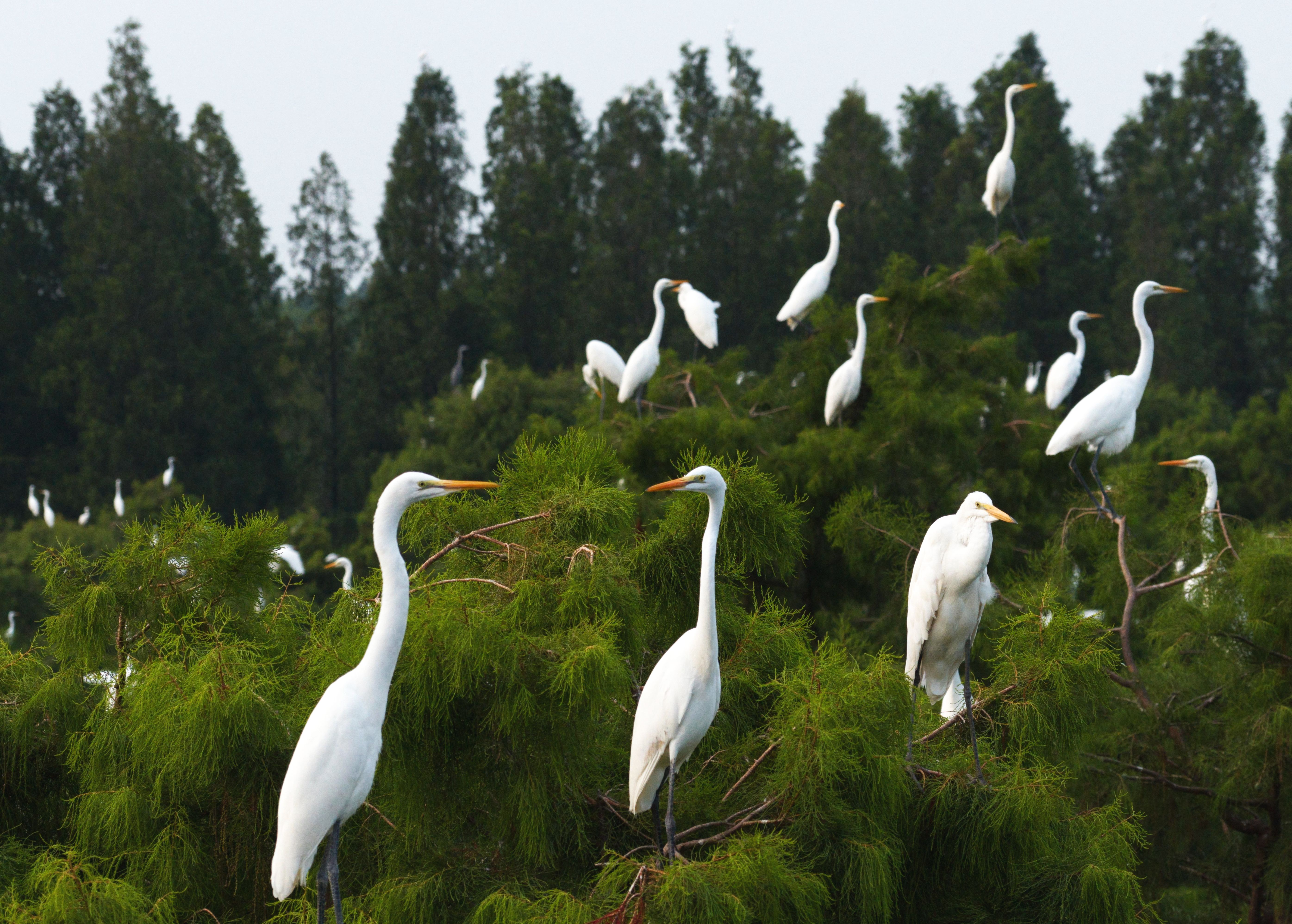 Egrets rest on tree tops in Huai'an in China's eastern Jiangsu province on July 16, 2025. (Photo by AFP Photo/China Stringer Network)