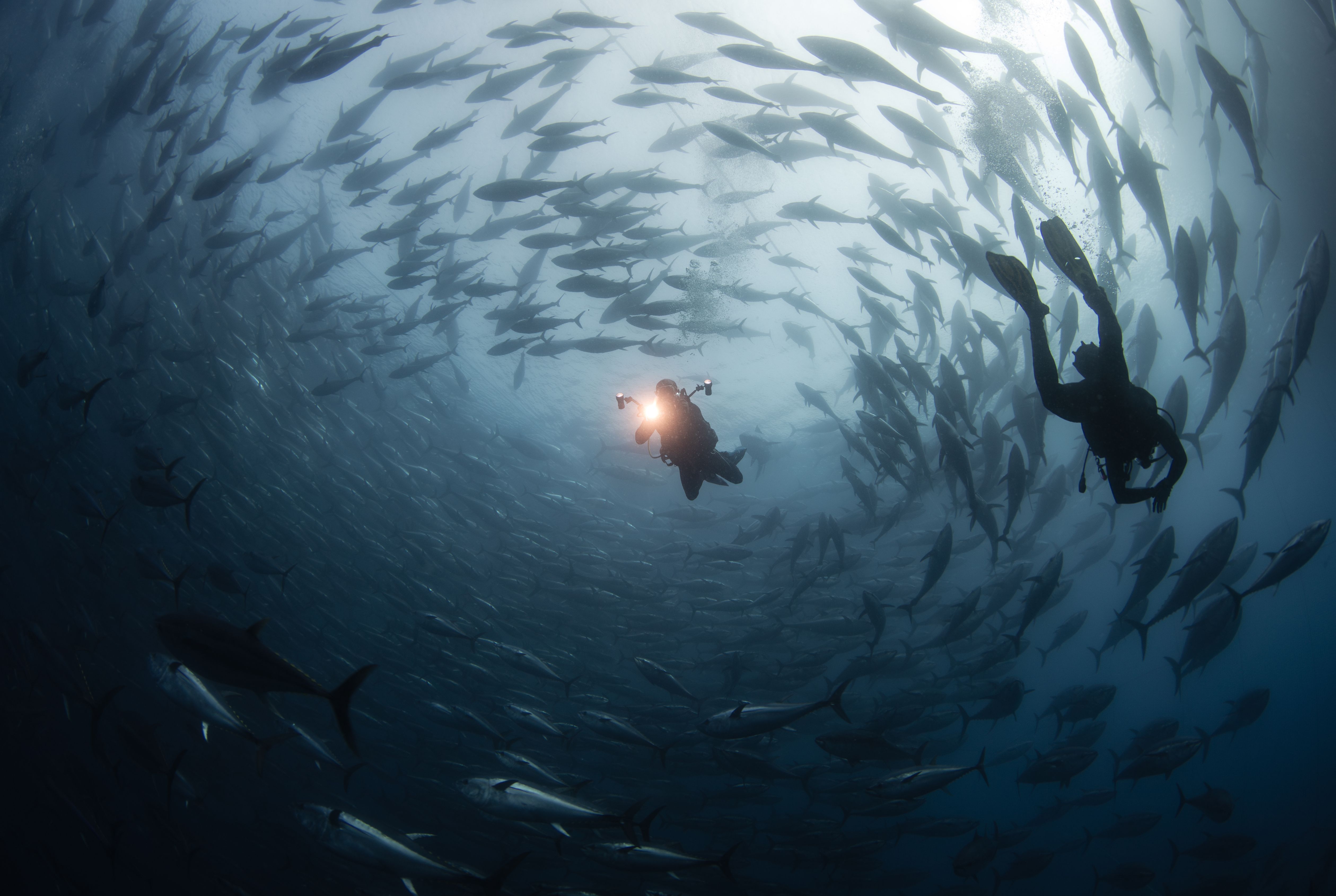 Fishermen transfer fish cages to Gerence Bay where they will be fed until the end of the year in Urla district of Izmir, Turkiye on July 09, 2025. After completing the bluefin tuna fishing season in the Mediterranean, Turkish fishermen faced waves reaching up to 2 meters on their return journey and took special precautions while passing through the challenging Cesme Strait. Encountering waves of 2 to 3 meters in some areas of the strait, the crews used underwater lifting balloons to prevent damage to the 25-meter-deep cages in regions where the sea depth dropped to 1516 meters. In this way, the tuna were safely transported to Gerence Bay. (Photo by Mahmut Serdar Alakus/Anadolu via Getty Images)