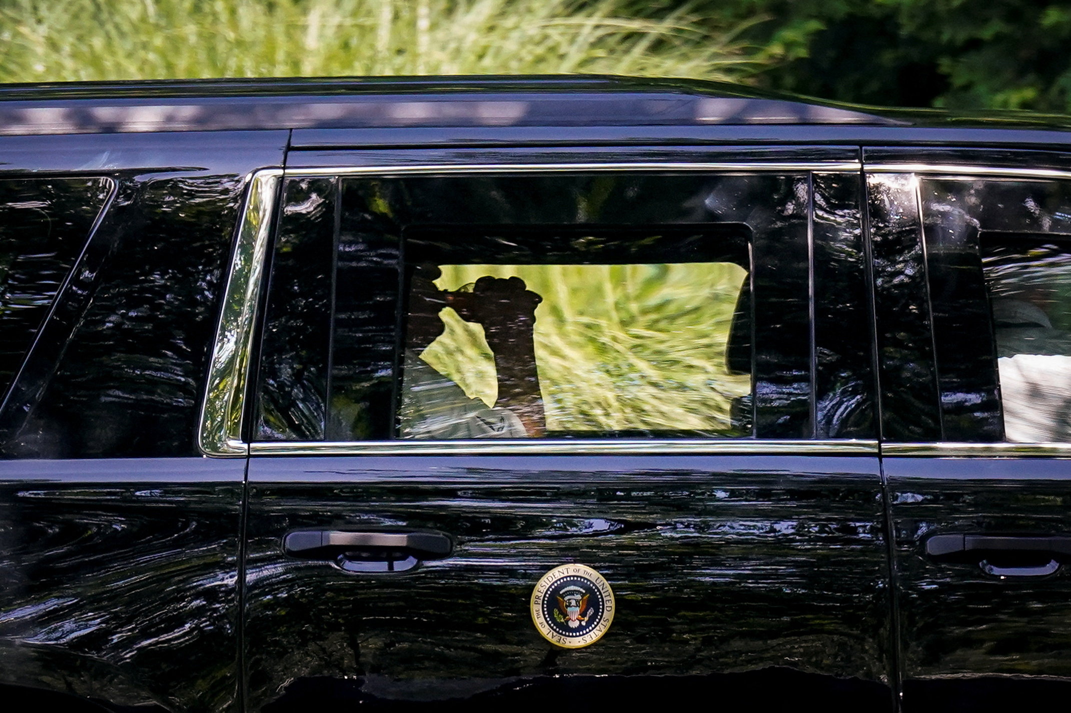 U.S. President Donald Trump departs in his motorcade following spending the day at Trump National Golf Club in Sterling, Virginia on July 20, 2025. (Photo by Al Drago/Reuters)