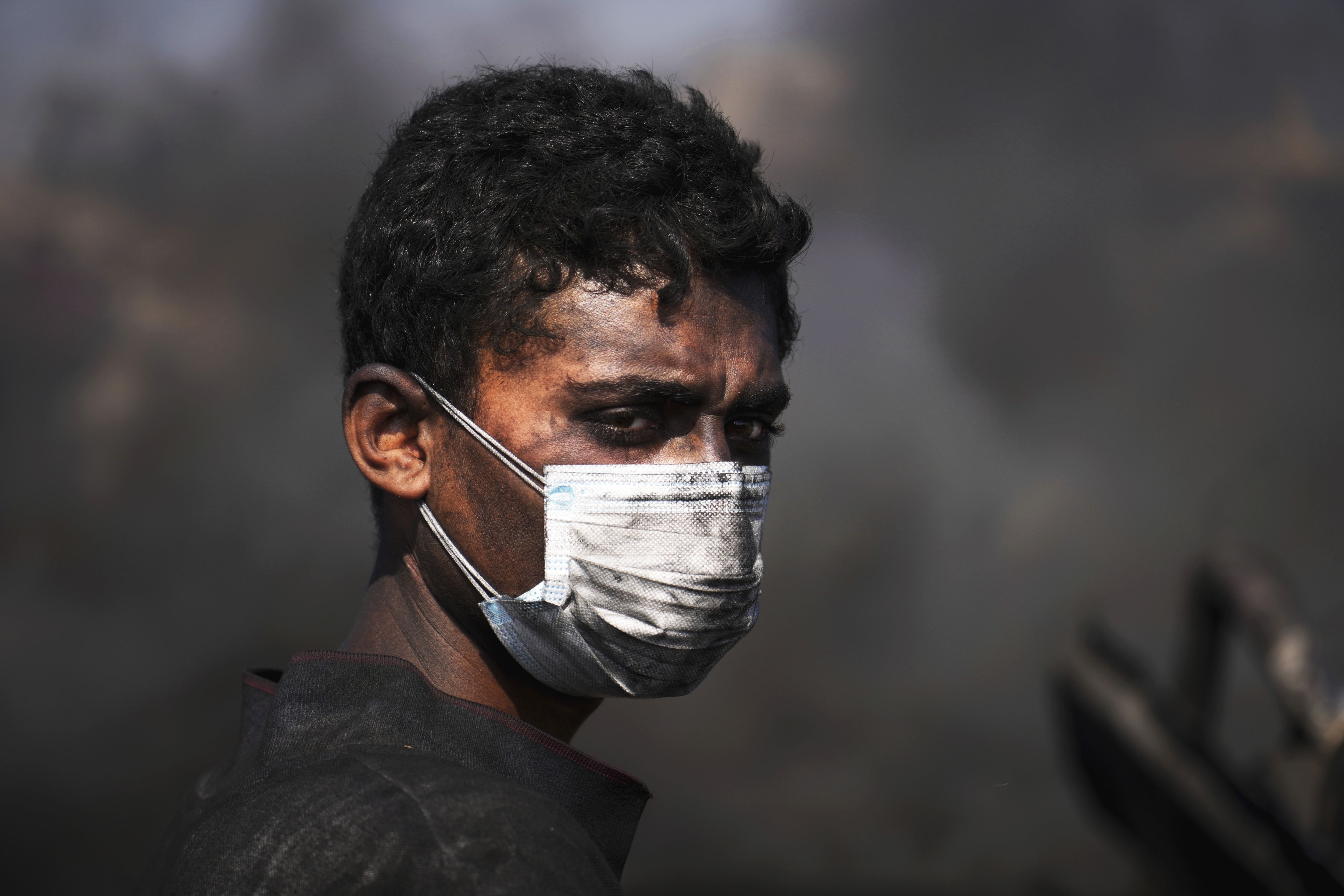 Mohammed Najm pauses while working at a makeshift burner used to extract fuel from melted plastic to sell along the Sea Road, south of Gaza City, Sunday, June 22, 2025. (Photo by Abdel Kareem Hana/AP Photo)
