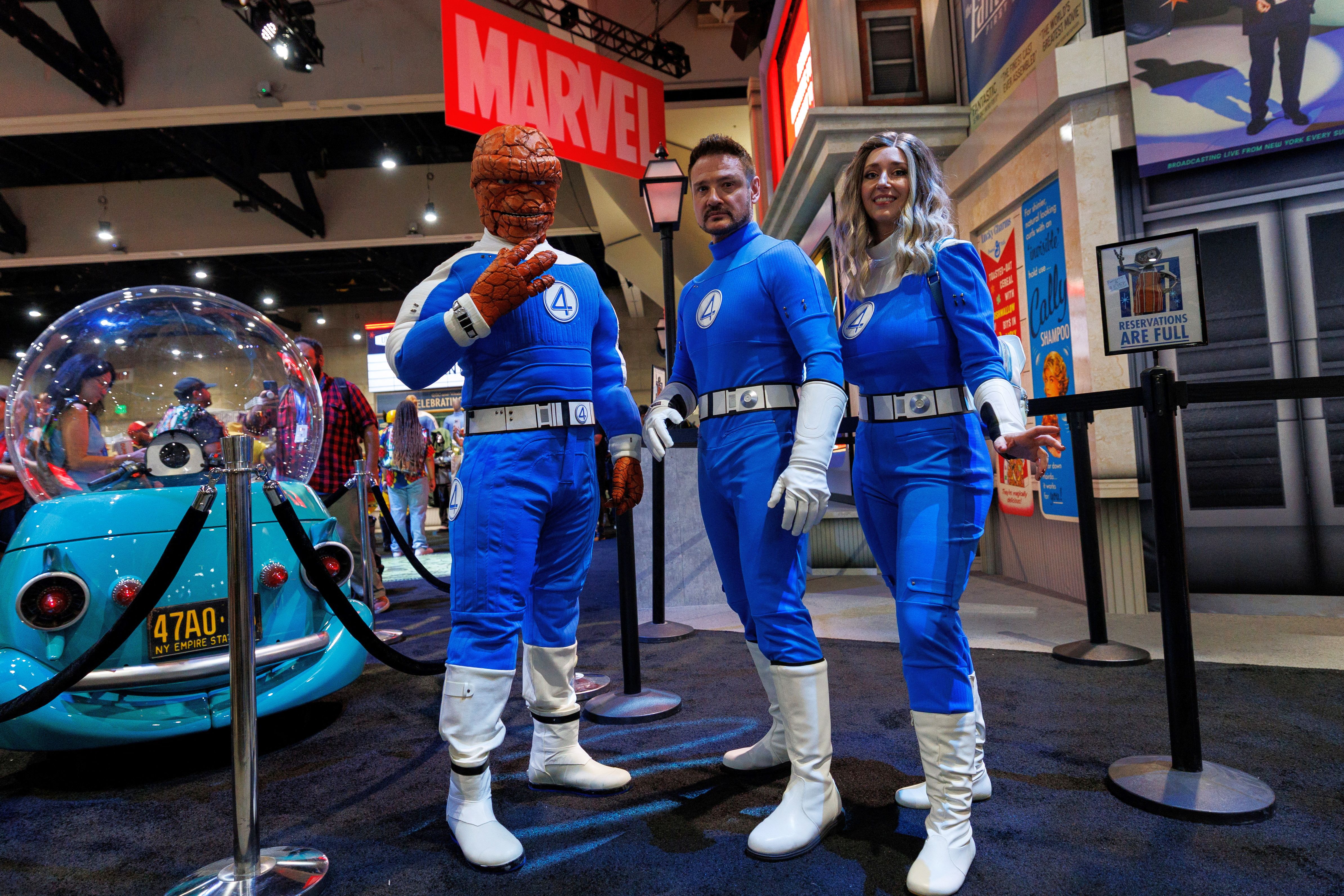 Booth attendees dressed as the Fantastic Four pose for a picture at the Marvel booth on the convention floor at Comic-Con International in San Diego, California, U.S. July 24, 2025. (Photo by Mike Blake/Reuters)