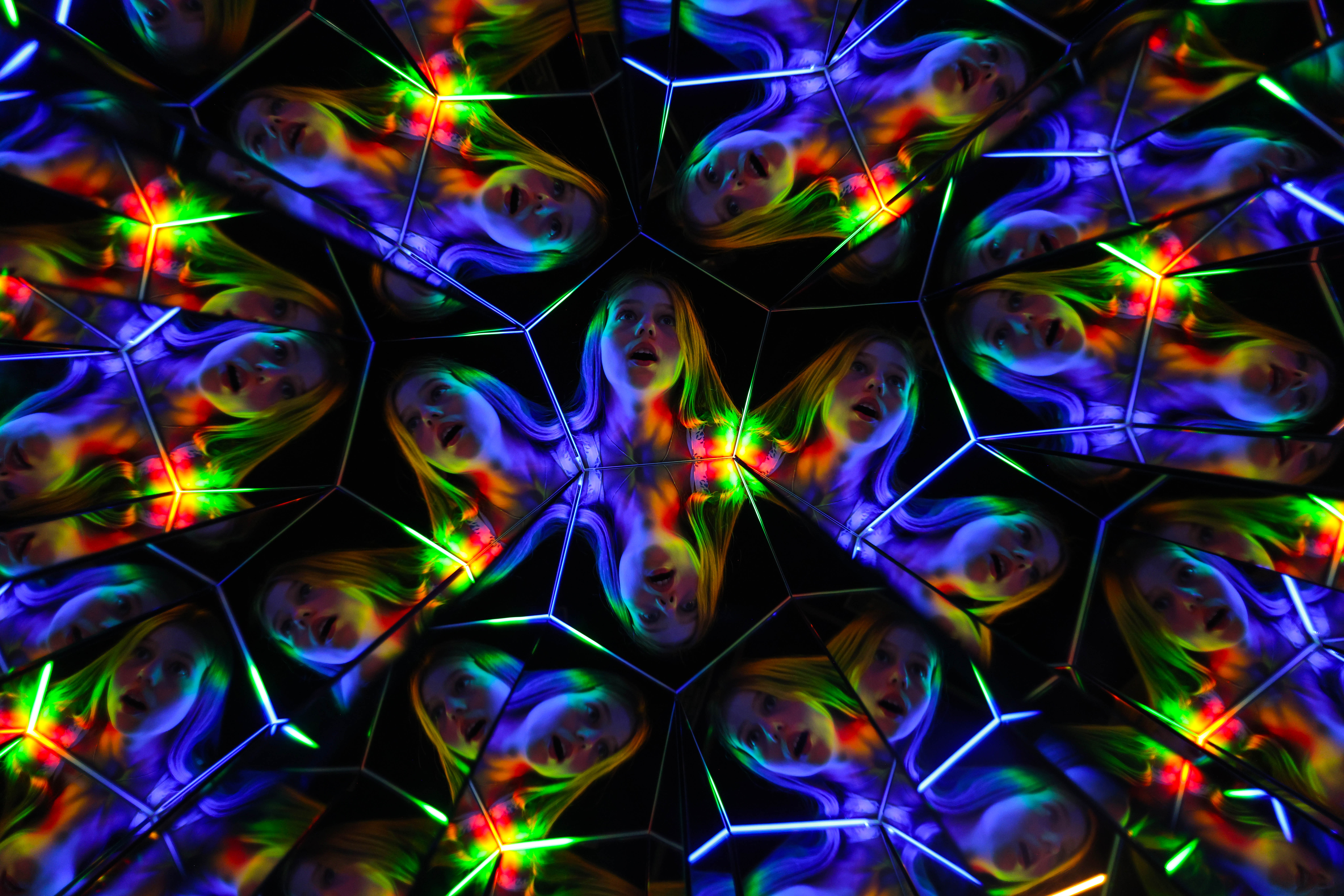 Stella Hill, 13, on June 27, 2025 has her perceptions altered at the Twist museum on Oxford Street, UK, known for its engaging, interactive exhibits that explore how the brain interprets reality. (Photo by Jack Hill/Times Media Ltd)