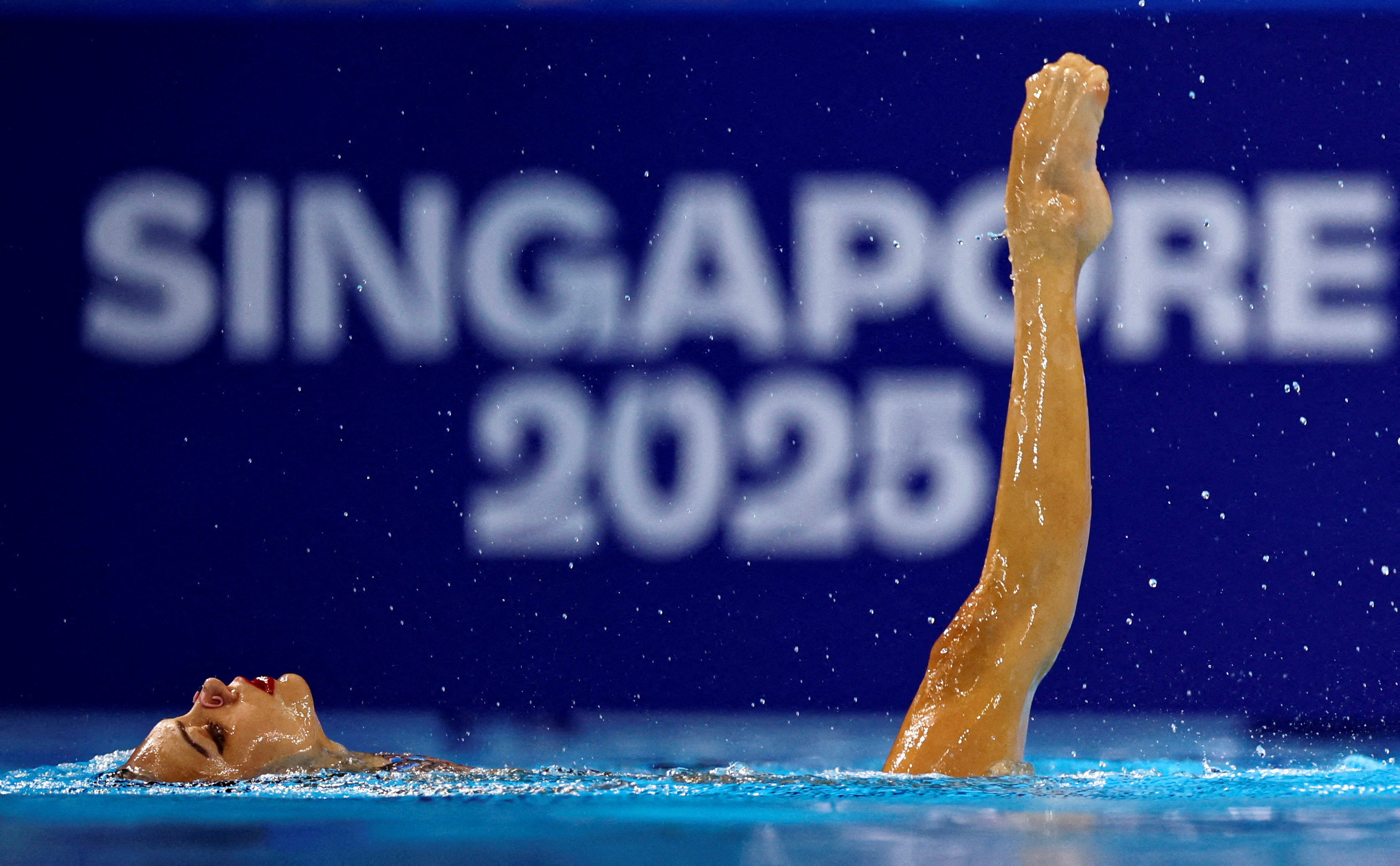 Neutral Athlete's Tatiana Gayday performs during the women solo technical final during the Singapore 2025 World Aquatics Championships at World Aquatics Championships Arena on July 19, 2025 in Singapore. (Photo by Tingshu Wang/Reuters)