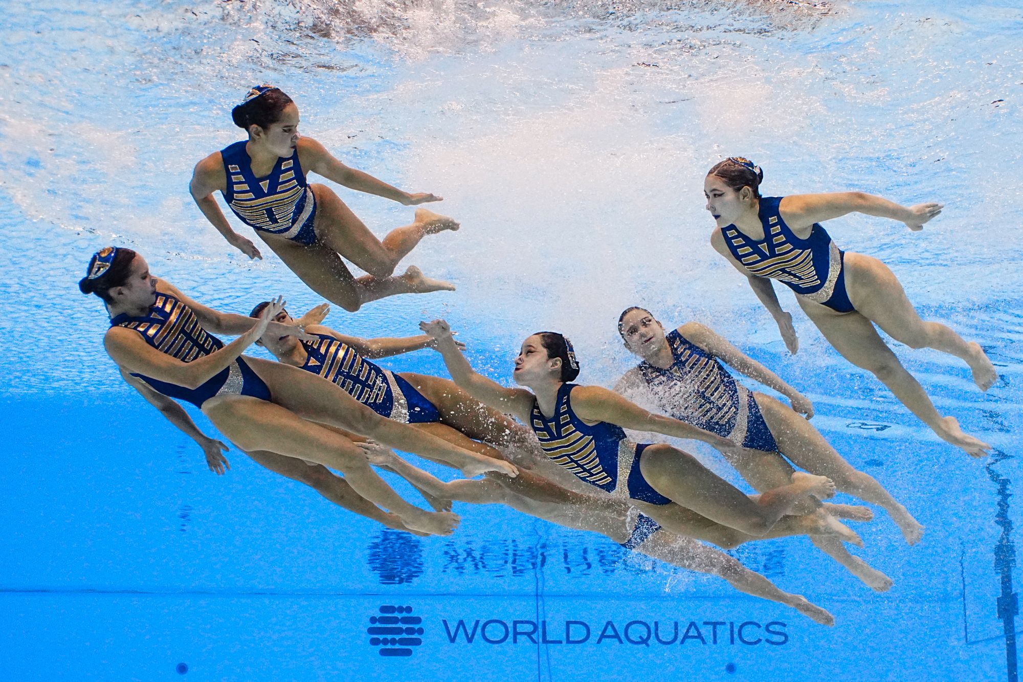 Team Thailand performs during preliminaries during the World Aquatics Championships at World Aquatics Championships Arena in Singapore on July 21, 2025. (Photo by Marko Djurica/Reuters)