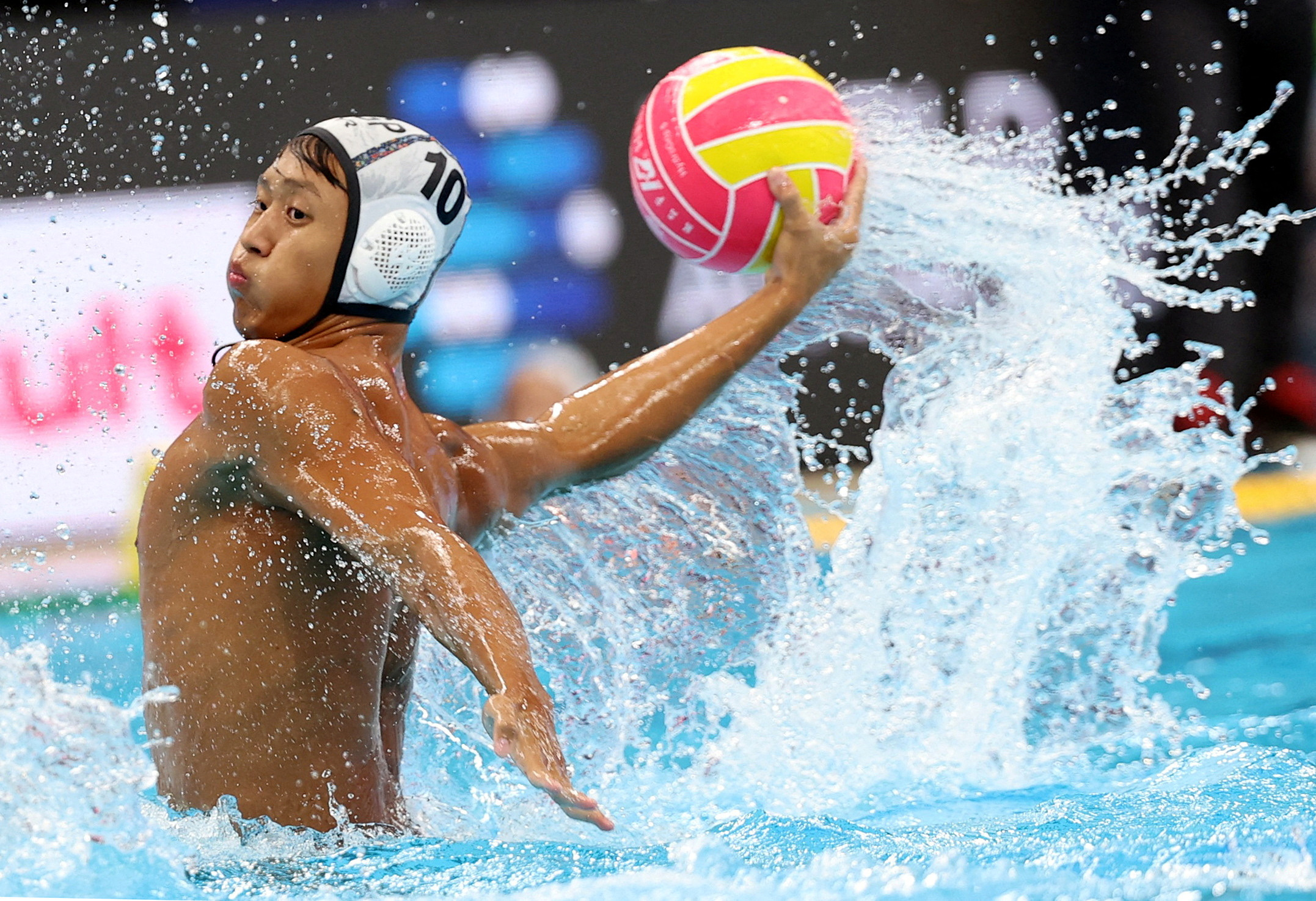 Singapore's Justin Kin Yan Saik in action against Canada in their water polo group matchduring the Singapore 2025 World Aquatics Championships at World Aquatics Championships Arena on July 14, 2025 in Singapore. (Photo by Jeremy Lee/Reuters)