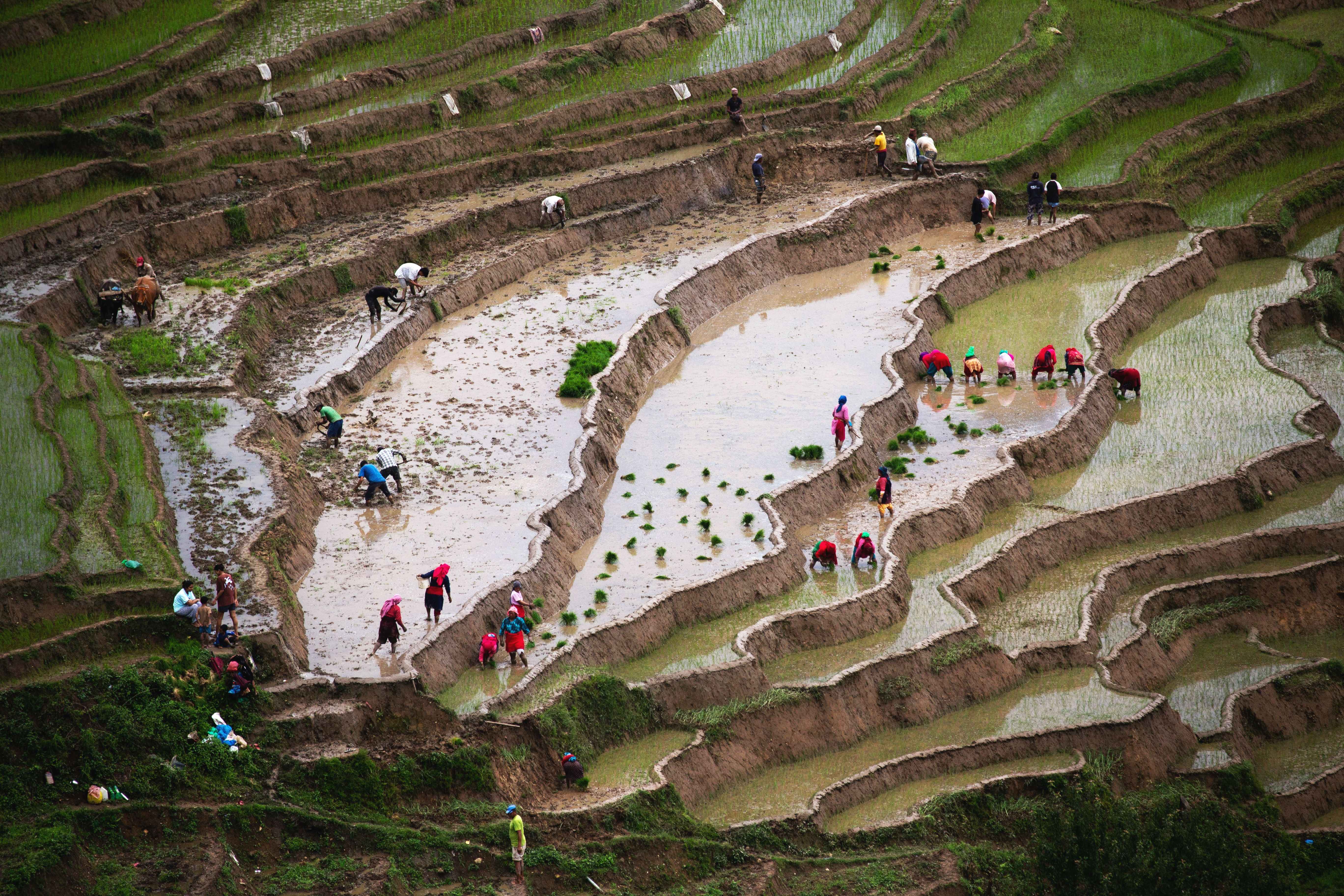 Nepali farmers transplant paddy saplings in their field on the outskirts of Lalitpur District in Nepal on June 26, 2025. (Photo by Sanjit Pariyar/NurPhoto/Rex Features/Shutterstock)