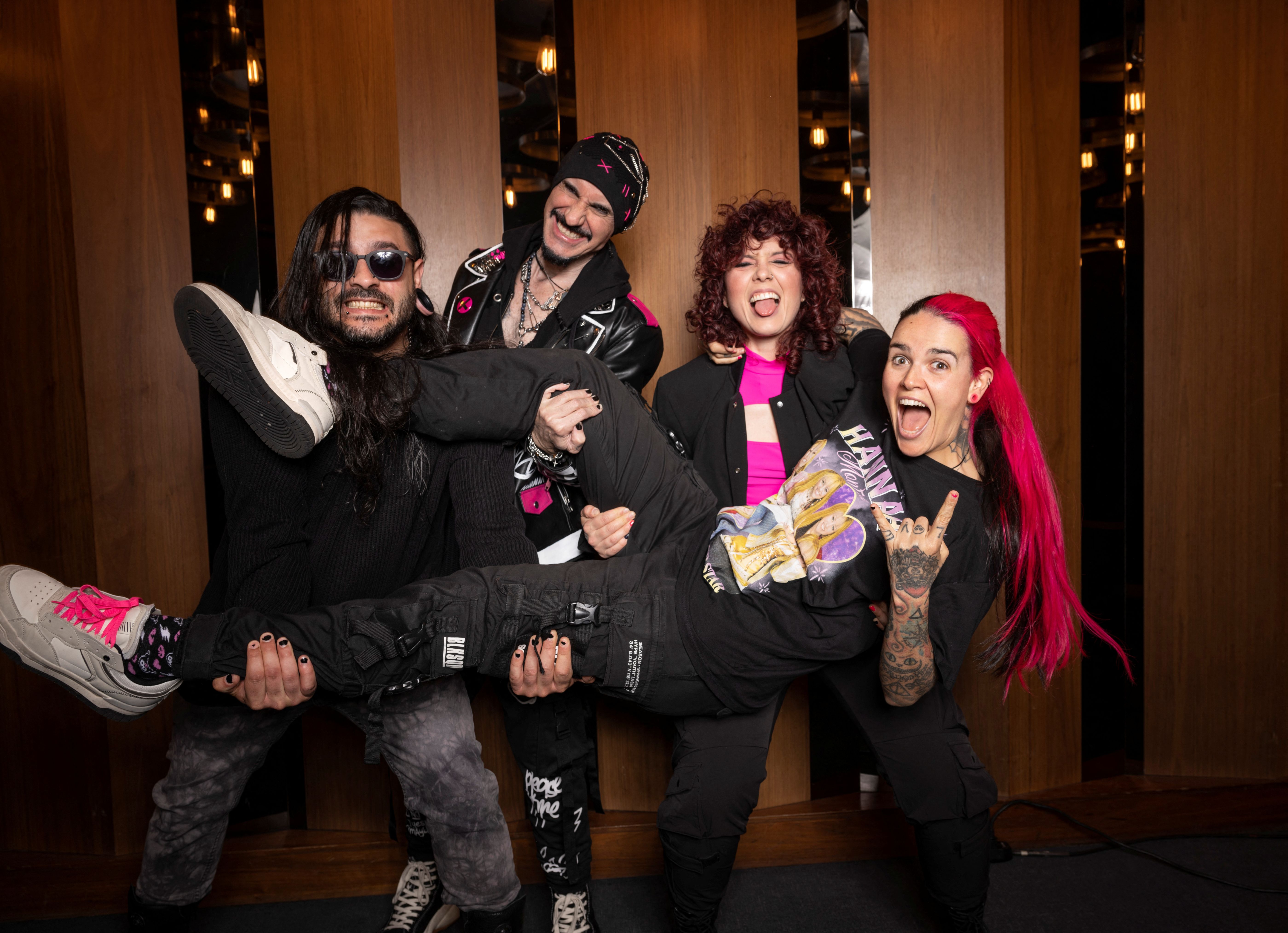 San Marino's contestants Megara pose during a press meeting ahead of the concert at the Nordic Eurovision Party in Stockholm on April 14, 2024. (Photo by Fredrik Sandberg/TT News Agency via AFP Photo)