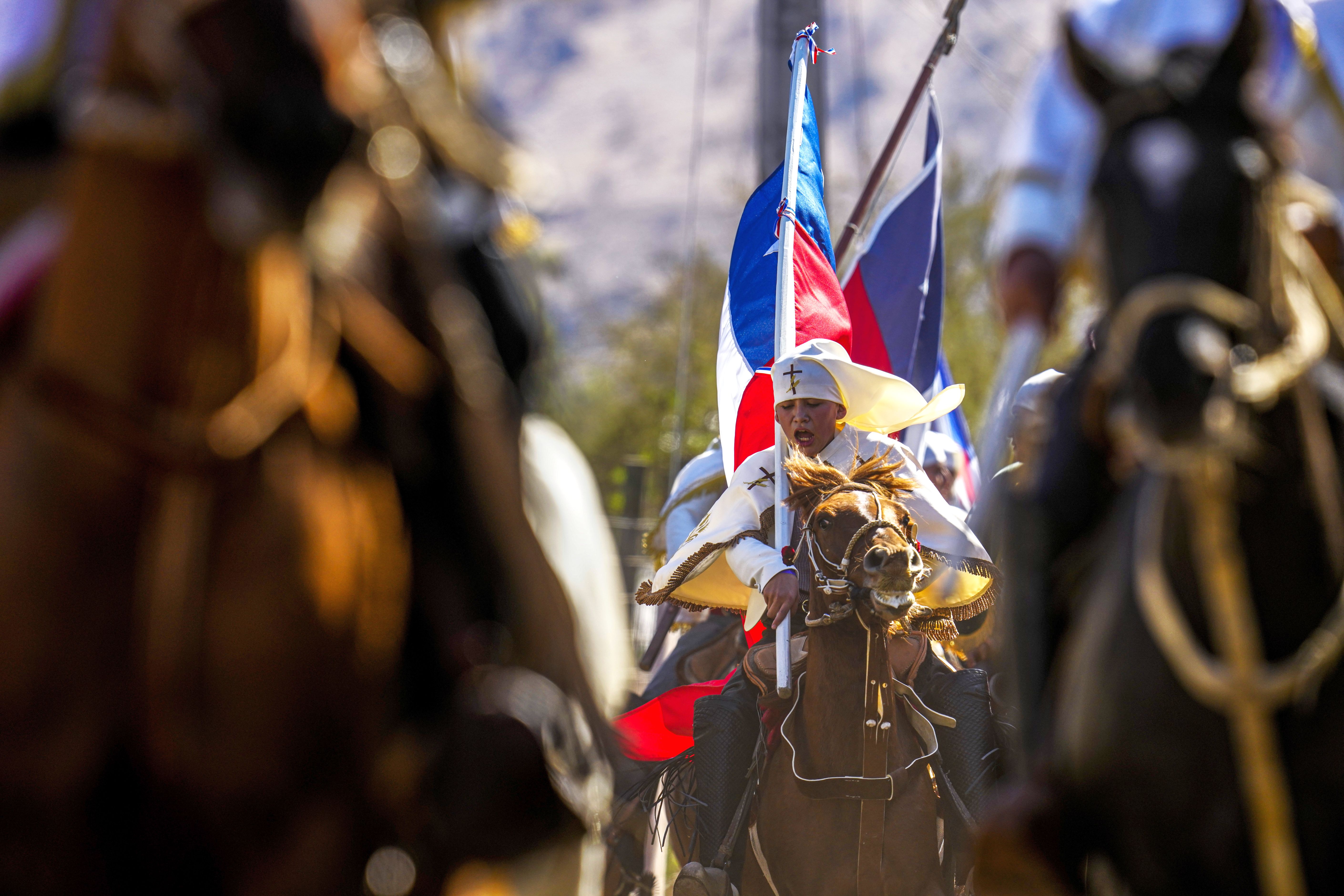 Chilean horseback riders known as “Huasos”, take part in the Quasimodo Feast, a celebration held on the first Sunday after Easter, in Colina, Chile, April 7, 2024. The “Huasos” accompany priests to give communion to the sick, in a procession to pay tribute to the Virgin of Carmen. (Photo by Esteban Felix/AP Photo)