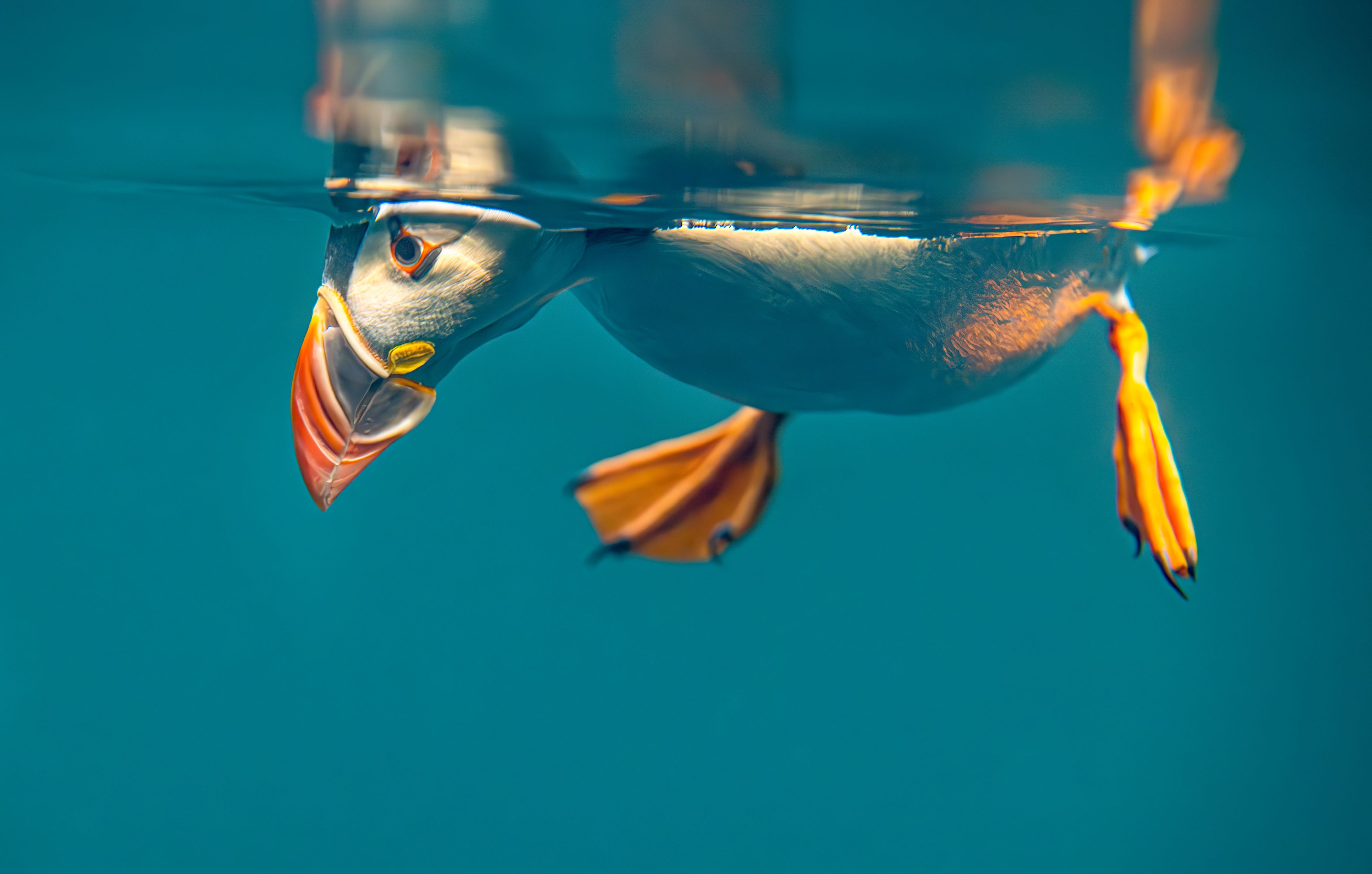 A puffin swims underwater in search for fish off the coast of the Farne Islands in Northumberland, North East England in the last decade of July 2025. (Photo by Brian Matthews/Solent News & Photo Agency)