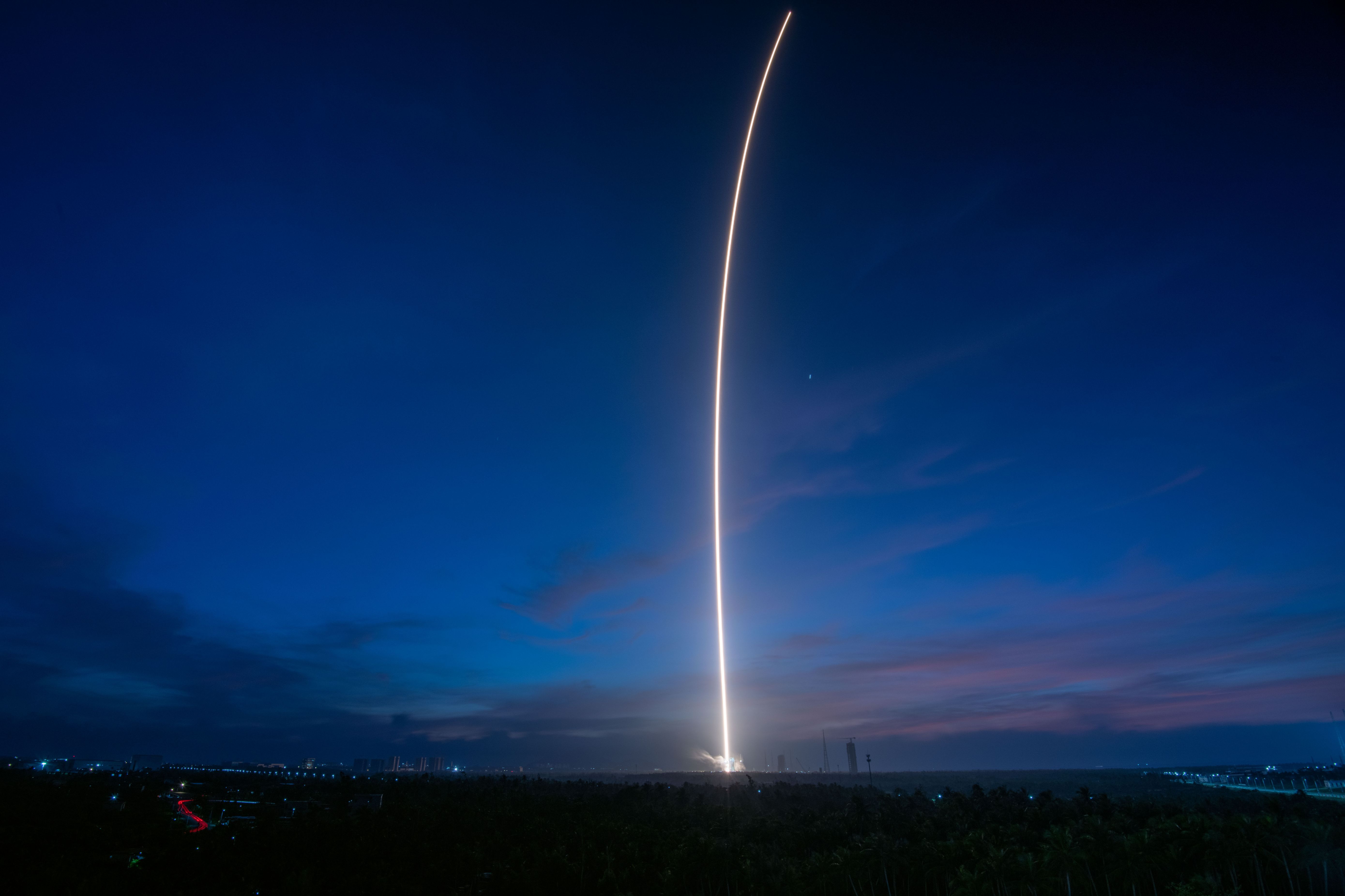 The Long March-7 Y10 carrier rocket carrying Tianzhou-9 blasts off from the Wenchang Spacecraft Launch Site on July 15, 2025 in Wenchang, Hainan Province of China. China launched the cargo spacecraft Tianzhou-9 in the early morning of July 15 to deliver supplies for its orbiting Tiangong space station. (Photo by Luo Yunfei/China News Service/VCG via Getty Images)
