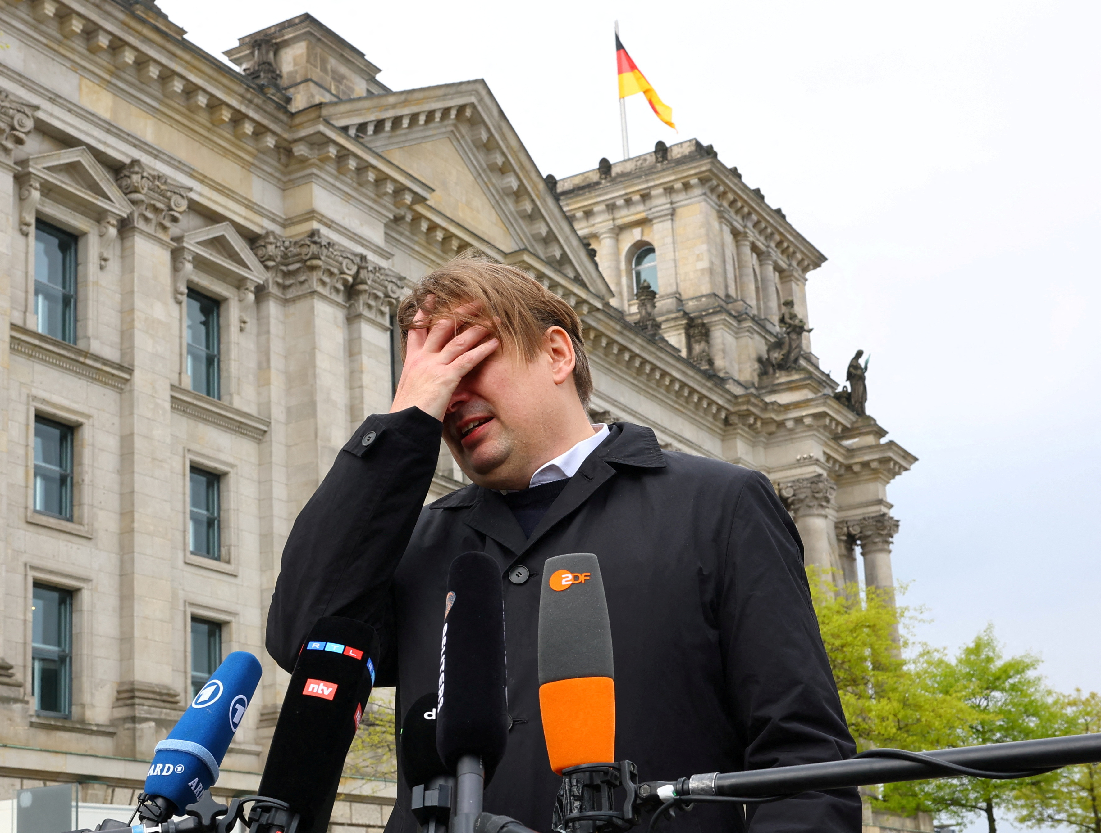 Maximilian Krah, member of the European Parliament for the far-right Alternative for Germany and AfD's top candidate in June's election to the assembly, gives a statement, after an aide has been arrested in Germany on suspicion of “especially severe” espionage for China, in Berlin, Germany, on April 24, 2024. (Photo by Fabrizio Bensch/Reuters)